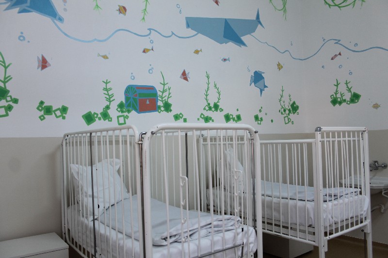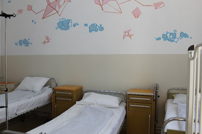 Investiţia, în valoare de peste 10.000 de euro, a cuprins: zugrăvirea pereţilor cu vopsea special destinată spitalelor, recondiţionarea uşilor din lemn, montarea de tarchett, crearea unui salon capitonat, montarea de geamuri termopan şi pictarea manuală a pereţilor cu diverse forme origami, pentru a stimula activitatea cerebrală.