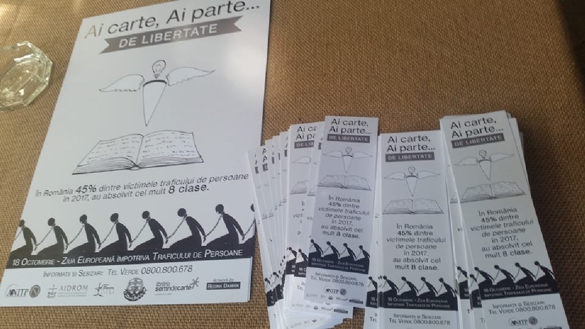 În vestul țării, Centrul Regional Timișoara Impotriva Traficului de Persoane, împreună cu AIDRom Timișoara și Fundația Missio Link International Timișoara și-au propus derularea unui proiect menit să marcheze Ziua Europeană de luptă împotriva traficului de persoane – 18 octombrie, sub sloganul „ Ai carte, ai parte… de LIBERTATE!”.