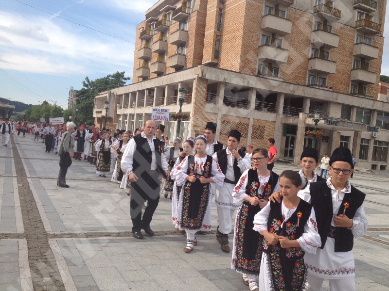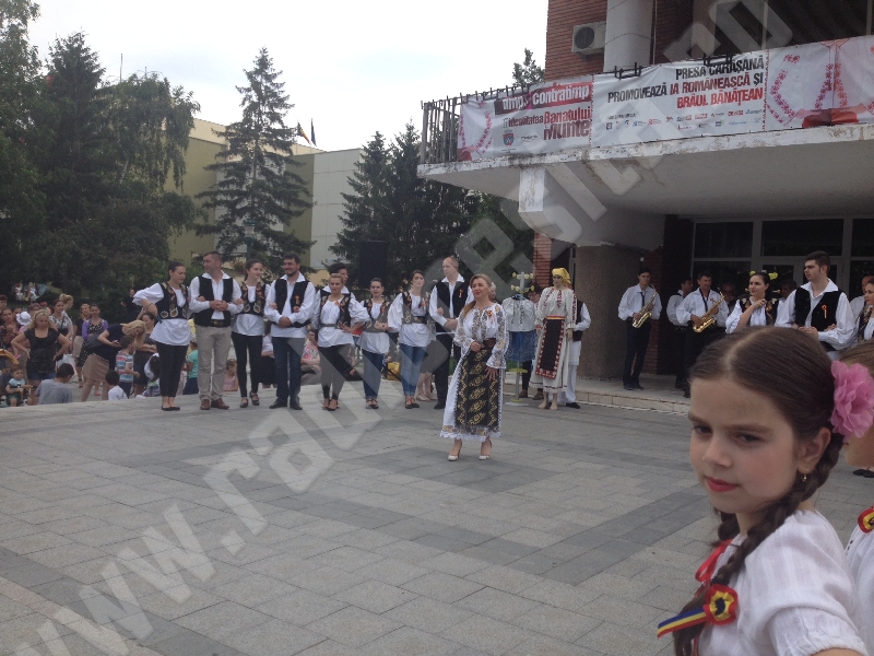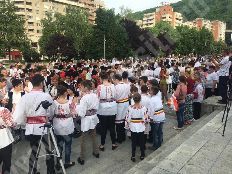UPDATE: Câteva sute de copii, adolescenți dar și persoane mature s-au aflat în aceasta seară în Centrul Reșiței pentru a cinsti simbolurile naționale și regionale, ia și brâul bănățean. O interesantă lecție despre costumele populare din Banat a oferit dr în filologie Ada D Cruceanu care a și exemplificat pe câteva costume recondiționate de prof Maricica Sandu de la Colegiul Bănățean din Reșița. A urmat apoi un moment artistic susținut de ansamblul Bârzava din municipiu și solista Camelia Bojin Ceocu iar la final, toti cei prezenti s-au prins în brâul bănățean, de la care n-a lipsit primarul Ioan Popa.