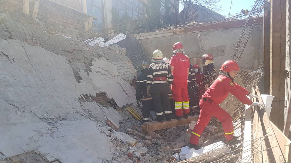 ISU Timiş a fost solicitat să intervină în municipiul Timişoara pentru degajarea unui perete prăbuşiţ sub care au fost surprinse două persoane. La locul intervenţiei s-au deplasat două autospeciale de descarcerare, două autospeciale de lucru cu apă şi spumă, două ambulanţe SMURD, 4 ofiţeri 20 de subofiţeri şi un câine de salvare destinat căutărilor sub dărâmături, inspectori din cadrul ITM, personal din cadrul poliţiei şi SALVO.