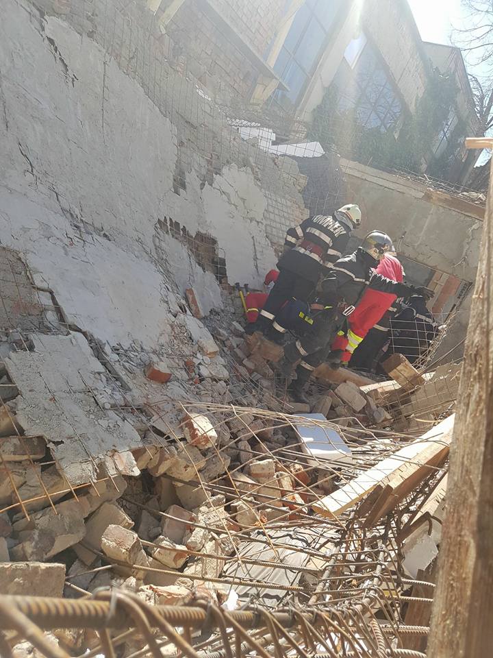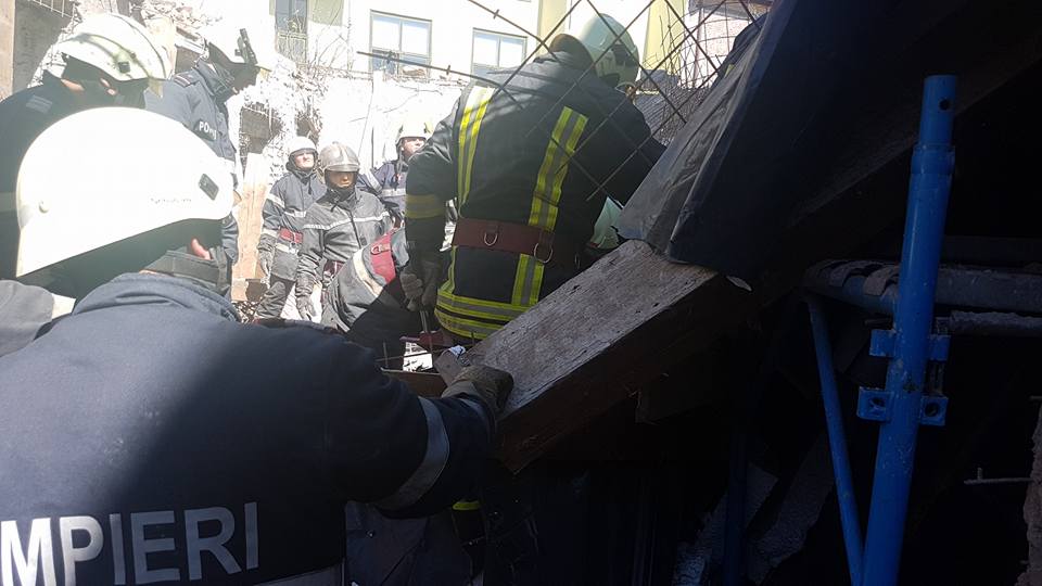 Intervenţia a fost îngreunată de pericolul constant de prăbuşire a elementelor de construcţie.În accident a mai fost implicată o persoană care, din fericire, a reuşit să se salveze din calea dărâmăturilor.