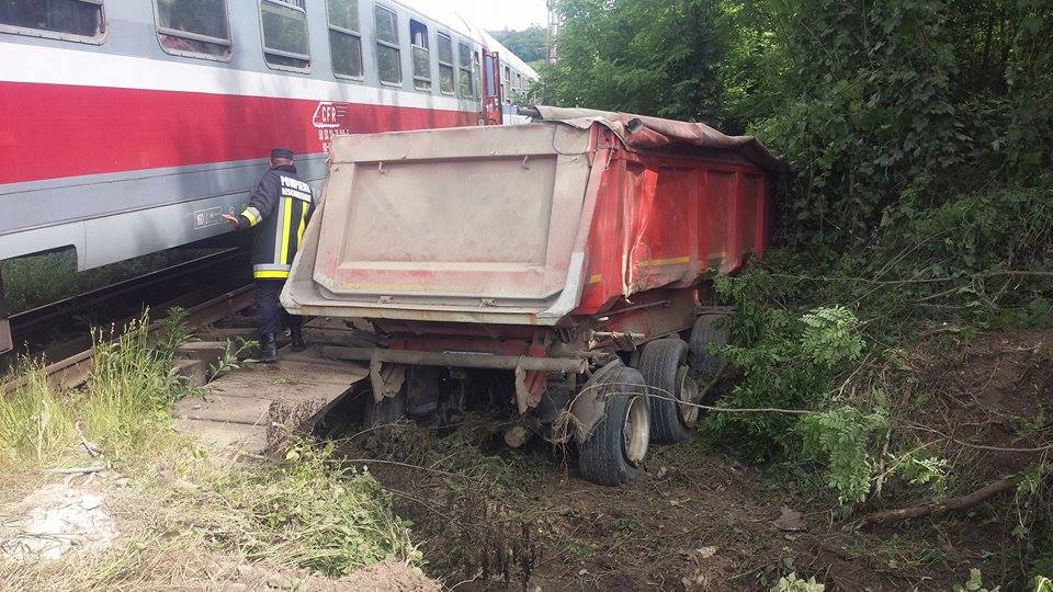 [FOTO] Accident feroviar în vestul ţării. Camion lovit de tren în această dimineaţă