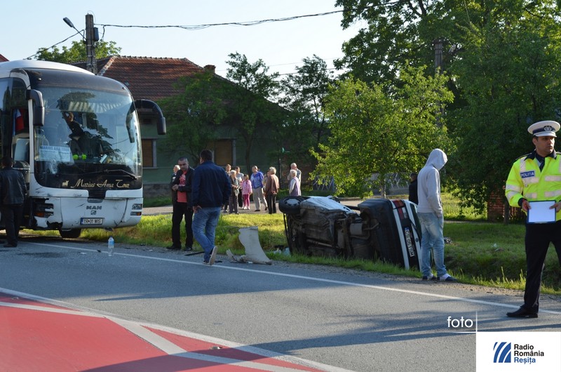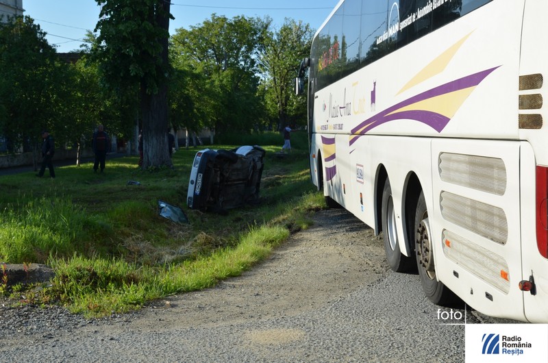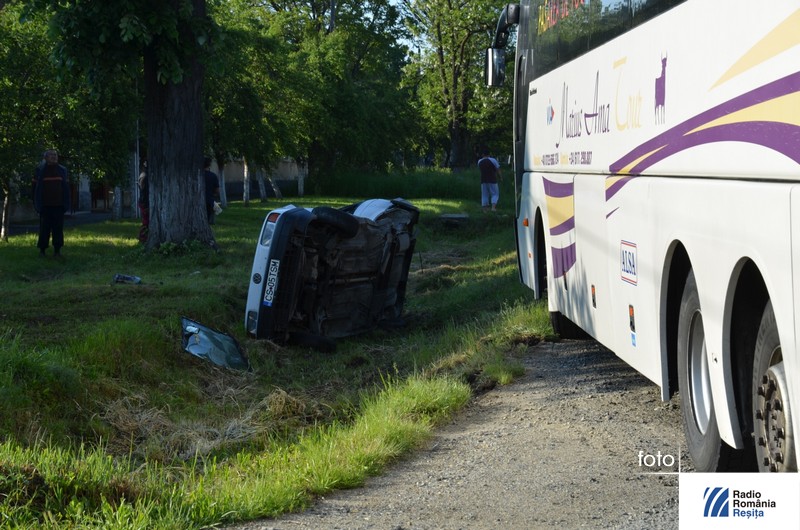 În urma impactului, autoturismul a fost răsturnat în afara carosabilului şi au rezultat trei victime, spune inspectorul Alin Anderca de la Serviciul Rutier din IPJ Caraş-Severin: