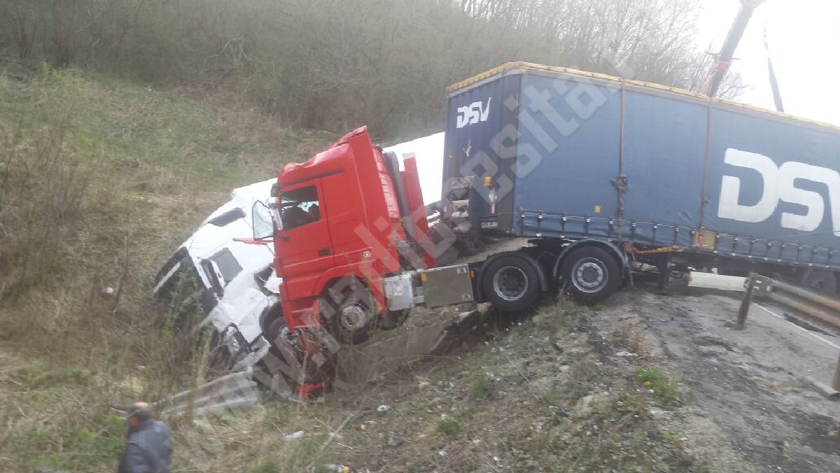[FOTO] Accident la Domaşnea. Două tiruri s-au ciocnit