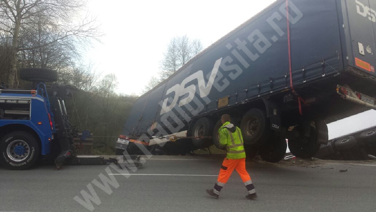 Centrul INFOTRAFIC din Inspectoratul General al Poliţiei Române informează că pe DN6 a avut loc un accident în care au fost implicate două autotrenuri. Traficul rutier între Băile Herculane – Caransebeş s-a desfășurat îngreunat, pe un fir alternativ, în zona localităţii Domaşnea unde s-a produs evenimentul rutier.