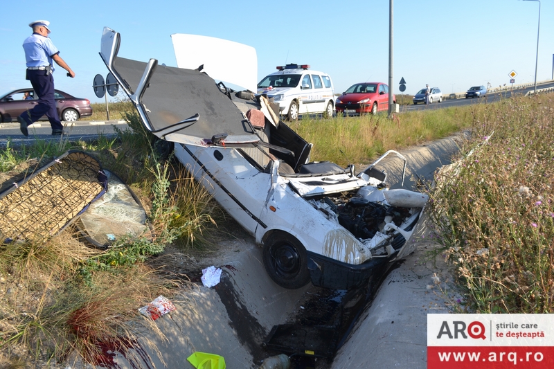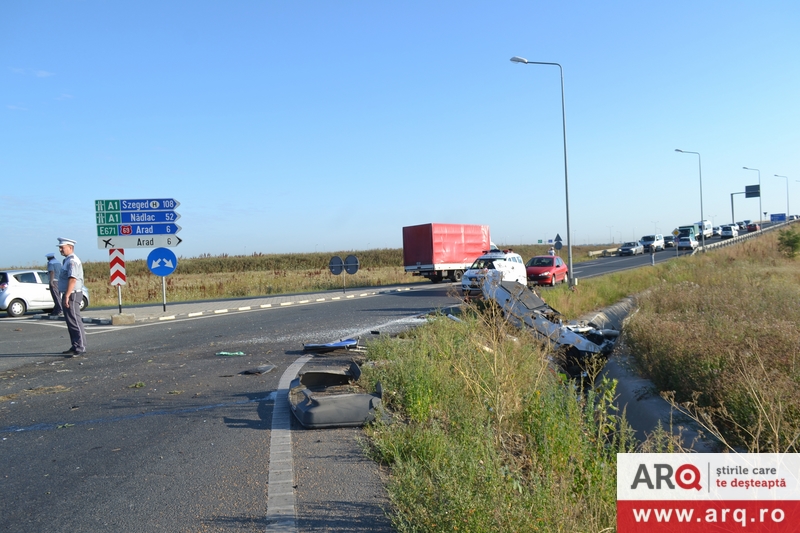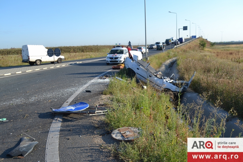 Un bărbat şi-a pierdut viaţa, în această dimineaţă, după ce maşina pe care o conducea s-a răsturnat în şanţ. Accidentul s-a petrecut pe DN 69, la ieşirea din Arad spre Timişoara. Conform primelor informaţii, maşina s-a răsturnat după ce a intrat în scuarul dintr-un sens giratoriu aflat la urcarea pe autostrada Arad – Timişoara, la ieşirea din municipiul de pe Mureş. La locul accidentului nu sunt urme de frânare astfel că există posibilitatea ca bărbatul ori să fi adormit la volan, ori să i se fi făcut rău.