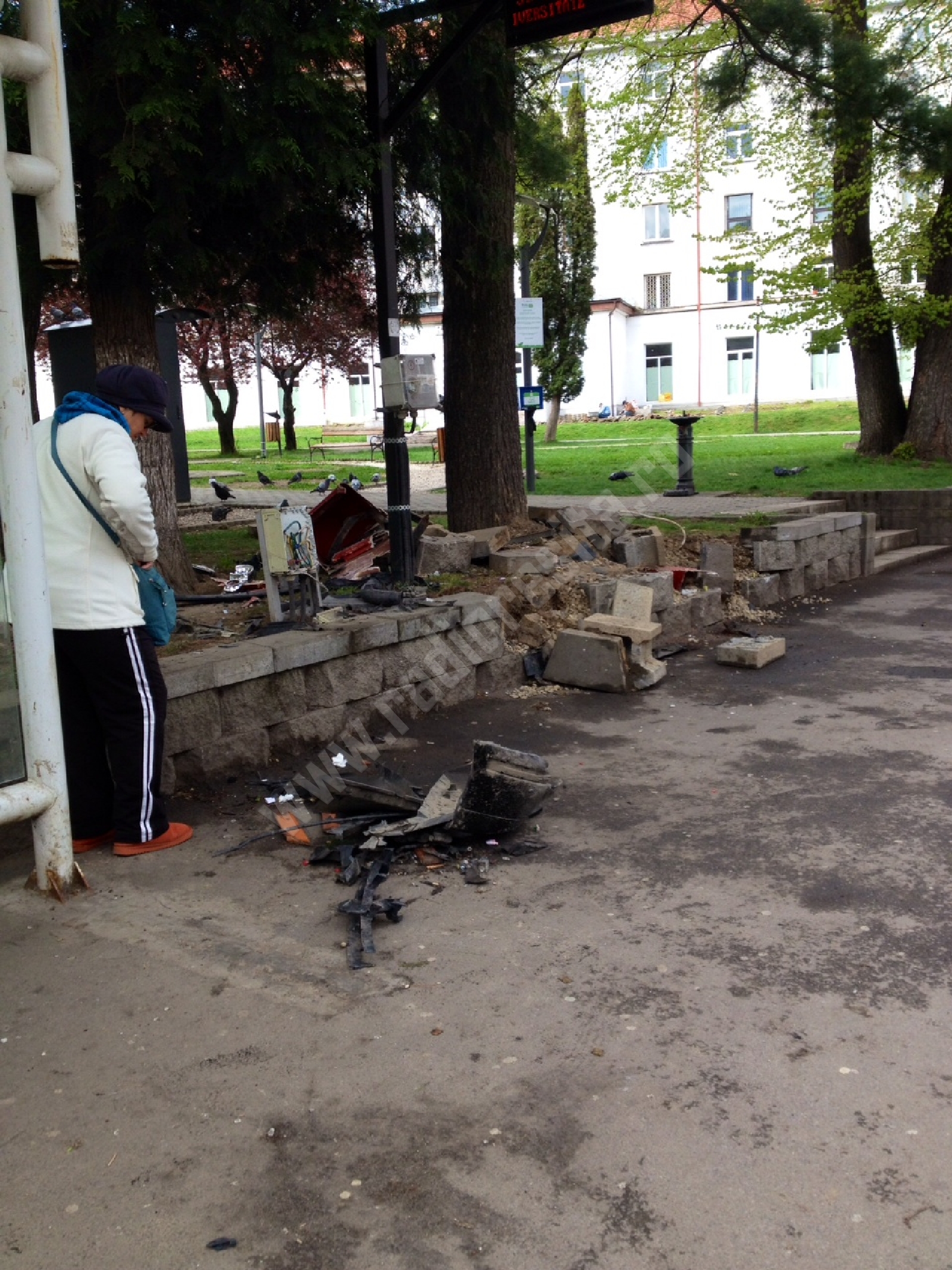 Zeci de oameni s-au oprit astăzi „să admire” pagubele lăsate în urmă de tânărul de 18 ani care a intrat cu o maşină cu mulţi cai putere exact în staţia de la Universitate. Dacă unii se întrebau miraţi oare ce s-a întâmplat acolo, alţii aflaseră deja de la Radio Reşiţa amănunte despre nefericitul eveniment.