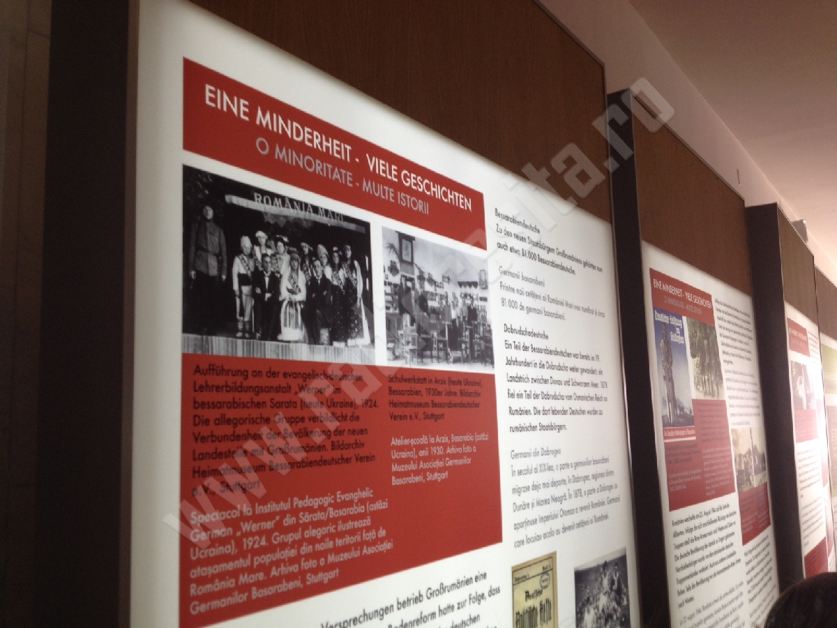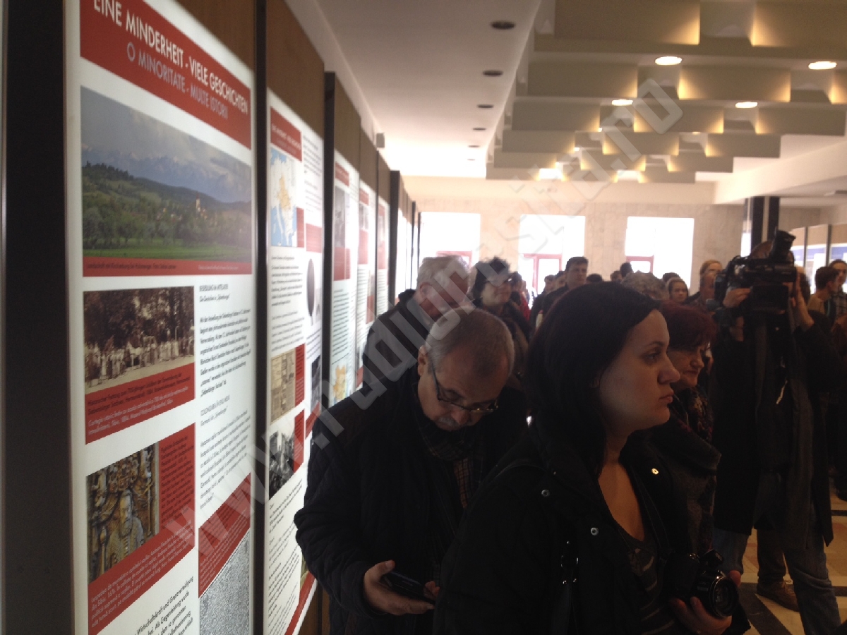 Un al doilea punct pe agenda de lucru a Excelenţei Sale l-a constituit vernisarea expoziţiei itinerante „Minoritatea germană în România – Trecut şi Prezent în Uniunea Europeană” deschisă publicului în foyer-ul Universităţii „Eftimie Murgu” din Reşiţa. Este vorba despre o colecţie de panouri luminoase cu afişe care prezintă pe larg istoria etnicilor germani din România, în imagine şi text, a precizat Paul Juergen Poor – preşedintele Forumului Democratic al Germanilor din România. Expoziţia a fost vernisată la Reşiţa cu prilejul celor 28 de ani de activitate a Asociaţiei germane de cultură şi educaţie a adulţilor din municipiul de pe Bârzava.