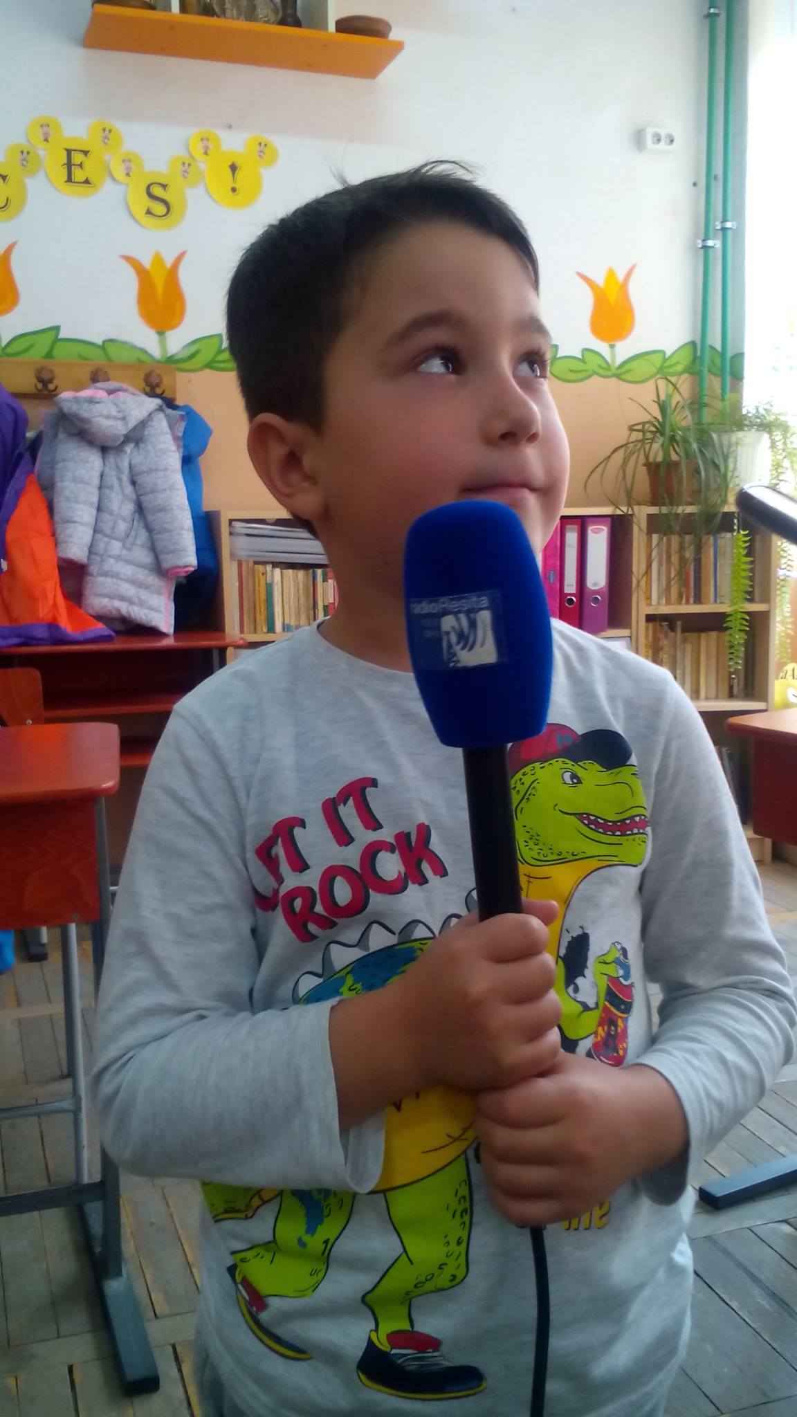 ”Bucuria este o stare trăită de fiecare dintre noi. Ne place să învățăm nonformal, ne place să fim fericiți. Activitatea s-a desfășurat la clasa pregătitoare B de la Colegiul Național ,,Mircea Eliade” Reșița, prof.Cornelia Bribete și a fost o întâlnire de suflet între micii școlari și doamnele realizatoare/redactor ai emisiunii pentru copii/știrilor. Elevii au fost încântați de noutățile aflate despre cum se realizează și cum se prezintă o emisiune/ o știre, au intrat în rolul prezentatorilor, oferind fiecăruia posibilitatea de a trăi bucuria de a povești. Copiii au fost foarte încântați. La plecarea acasă au început să ia interviu părinților, în curtea școlii, spunându-le că sunt de la Radio Reșița, a spus prof. Cornelia Bribete.”