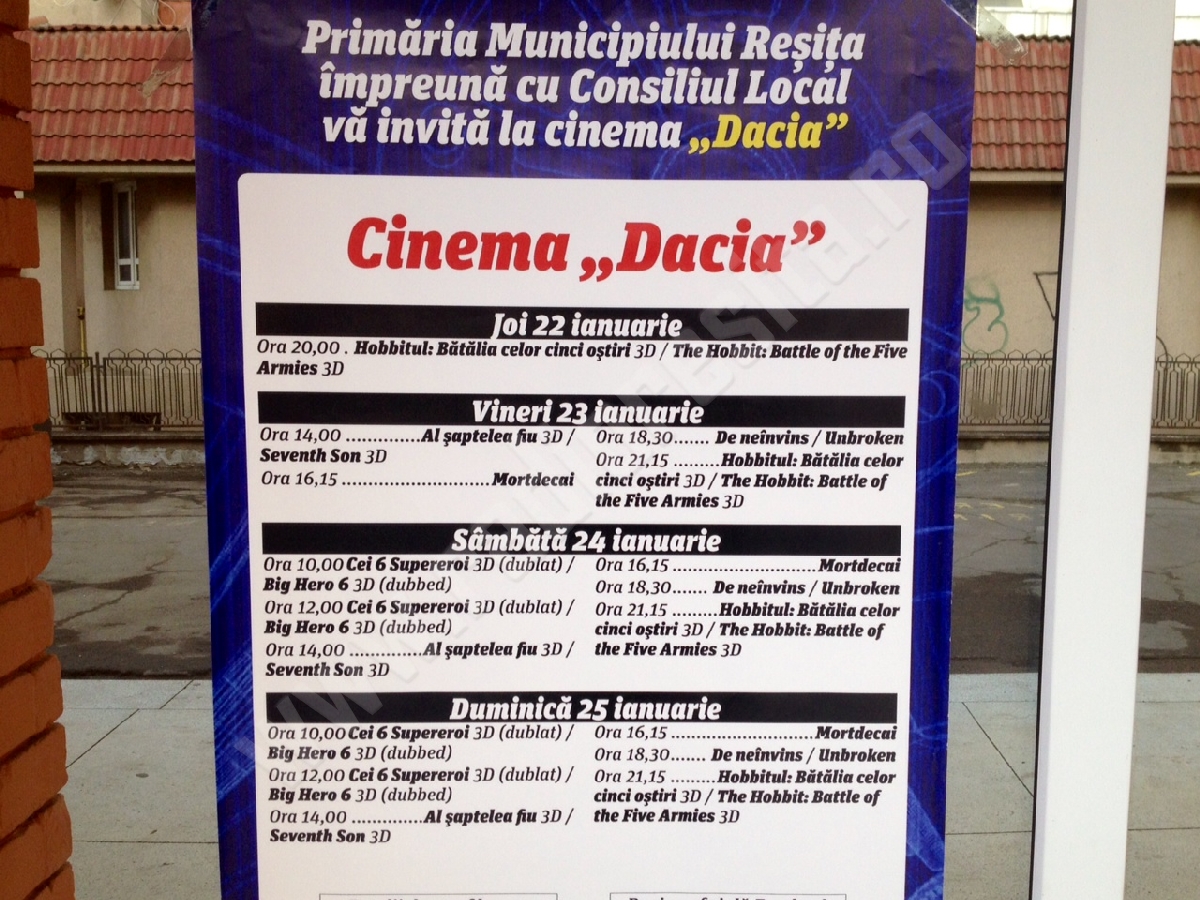 Începând din 22 ianuarie, Reşiţa a intrat pe harta oraşelor cu cinematograf în format 3D. Seara de joi i-a făcut pe cei mai în vârstă să îşi aducă aminte de anii 80, când sala de cinema era arhiplină şi trebuia să ai pile la casieră pentru a procura bilete la Winnetou sau la Fantoma. Vremurile s-au schimbat, cinematograful a intrat în comă, fiind bătut de aparatele video, de apariţia televiziunilor specializate în difuzarea de filme şi de internet, unde poţi viziona filme online. Cu toate acestea, cea de-a şaptea artă poate fi savurată şi consumată doar în cinematograf. Autorităţile din Reşiţa au înţeles acest lucru şi au reuşit să reînvie cinematograful Dacia. Consiliul Local s-a asociat cu o societate comercială care se angajează să aducă cinefililor reşiţeni şi nu numai, 12 premiere pe lună. Primarul Mihai Stepanescu spune că este un câştig pentru cărăşeni, pentru că este singurul cinematograf de acest fel din judeţ.
