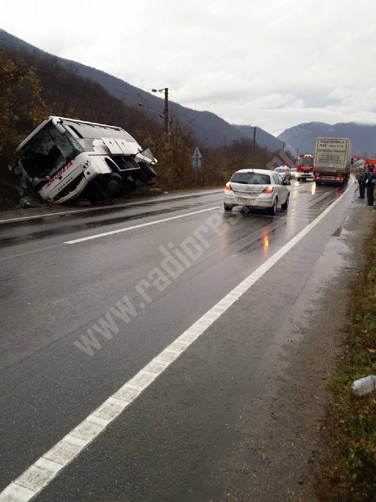 Un accident de circulaţie, în care a fost implicat un autocar, s-a produs în această după amiază în apropierea gării oraşului Băile Herculane. Autocarul, având 34 de persoane, s-a răsturnat în şanţ. Iniţial au fost transportate la spital 5 persoane, dar ulterior au mai fost trimise trei persoane, toate la Spitalul din Drobeta Turnu Severin.. Ulterior încă 7 au primit îngrijiri medicale.