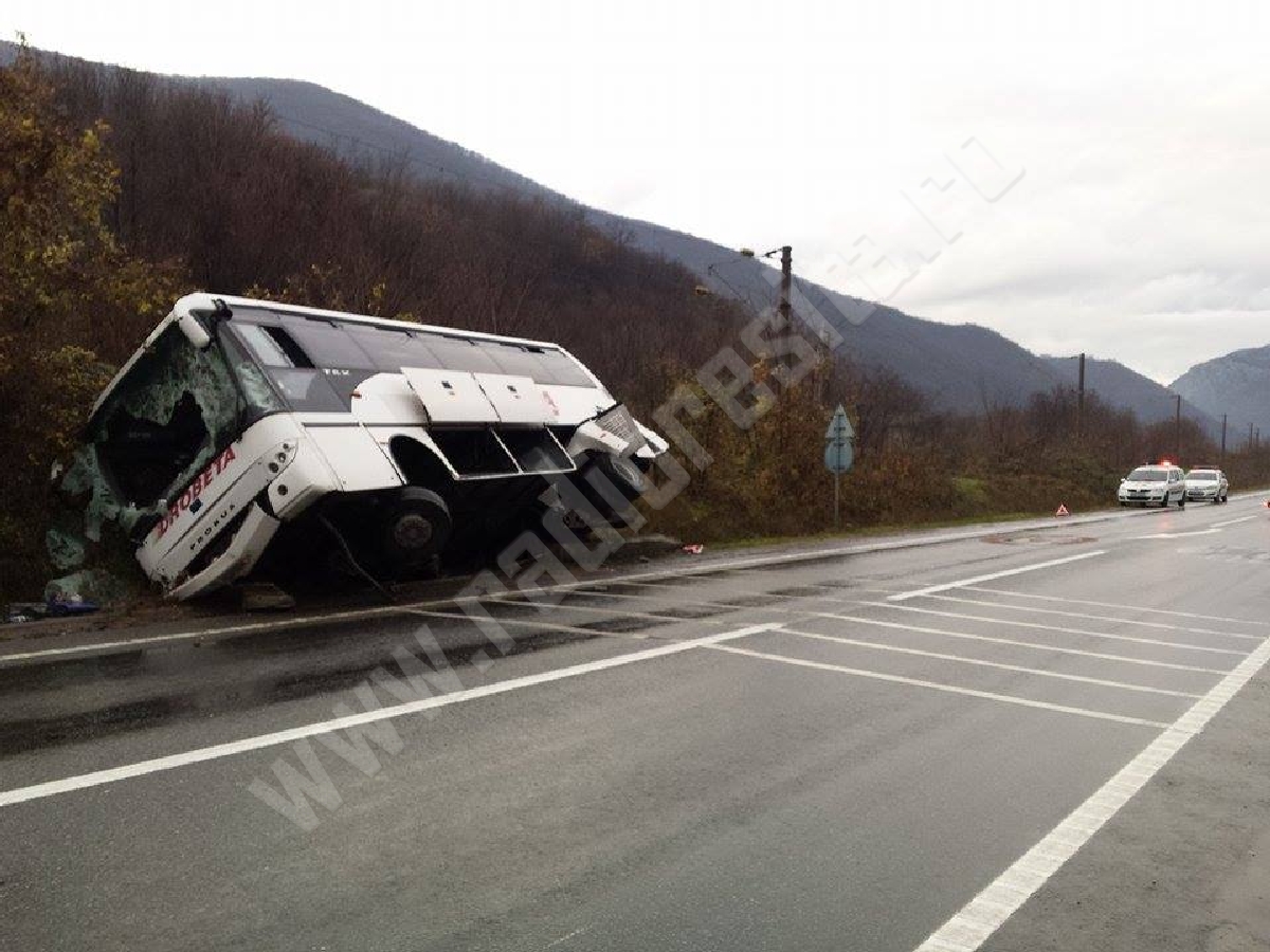 Accidentul s-a produs din vina şoferului autocarului. Carosabilul a fost umed, afară ploua şi nu a păstrat distanţa faţă de un autoturism aflat în faţa sa. Şoferul acestui autovehicul a virat la stânga, iar conducătorul auto al autocarului, dorind să evite coliziunea, a virat la dreapta şi a lovit un cap de pod. În urma impactului autocarul s-a răsturnat.