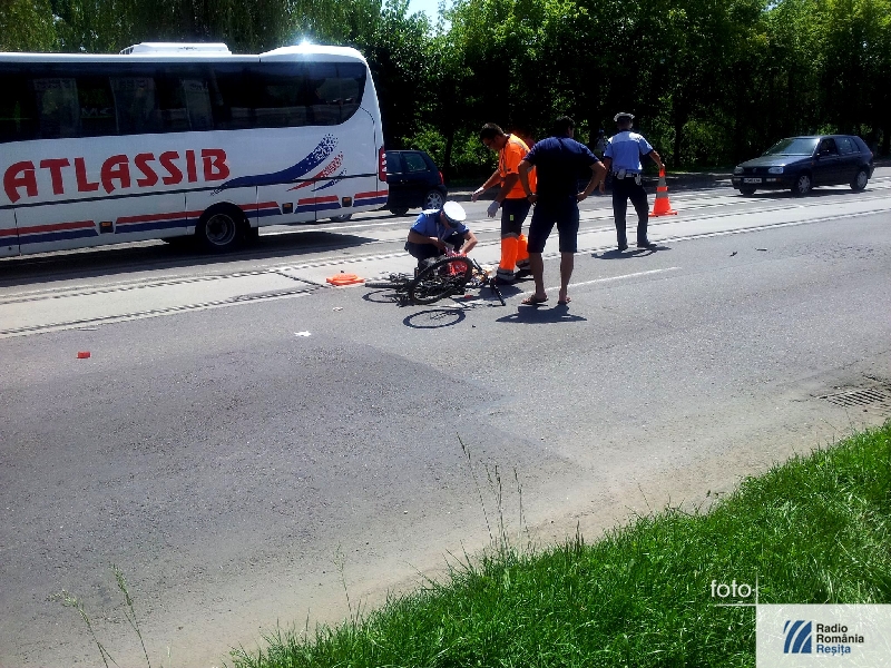 Neatenţia în trafic continuă să facă victime. Un nou accident a avut loc astăzi, la ora prânzului în Reşiţa. În zona Triaj un biciclist în vârstă aproximativ 65 de ani a fost rănit după ce a încercat să treacă de pe prima banda de circulație pe cea de-a doua. Bărbatul a fost acroşat de un autoturism, care se deplasa în aceși direcție, condus de un șofer în vârsta de 43 de ani . La prima vedere, biciclistul nu prezintă răni grave, ci doar escoriații. Niciunul dintre cei doi nu au consumat băuturi alcoolice. Comisarul Traian Dragomir, şeful Biroului Rutier Reşiţa are primele amănunte despre modul în care s-a produs accidentul: