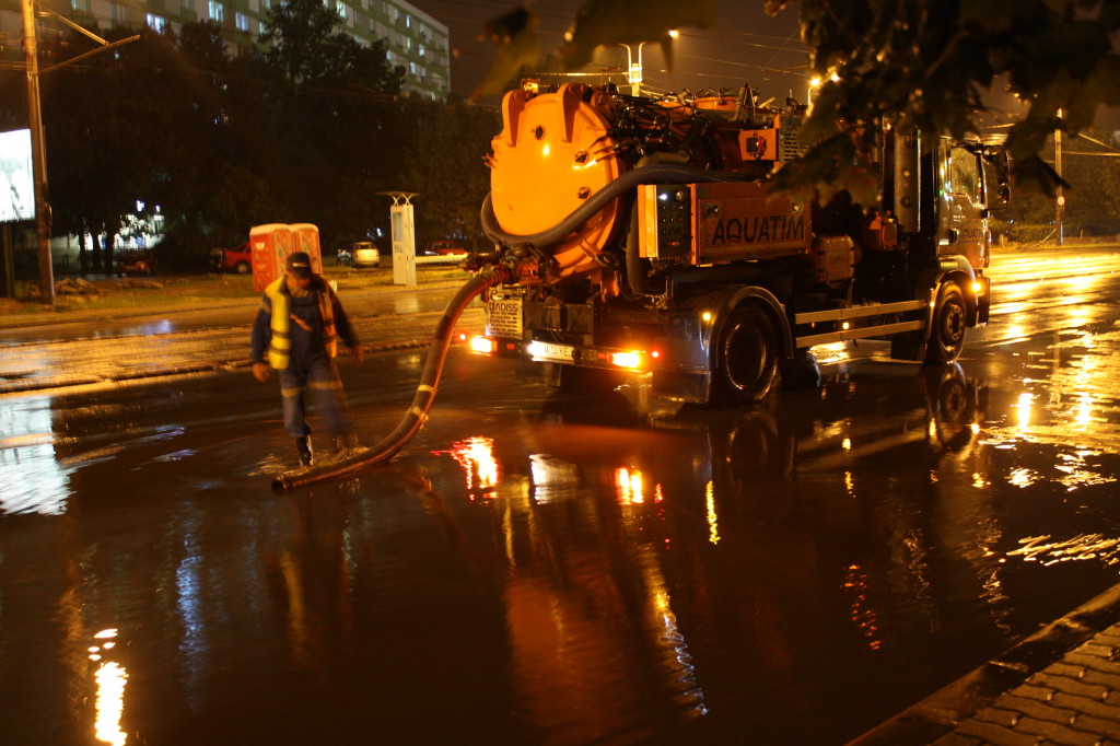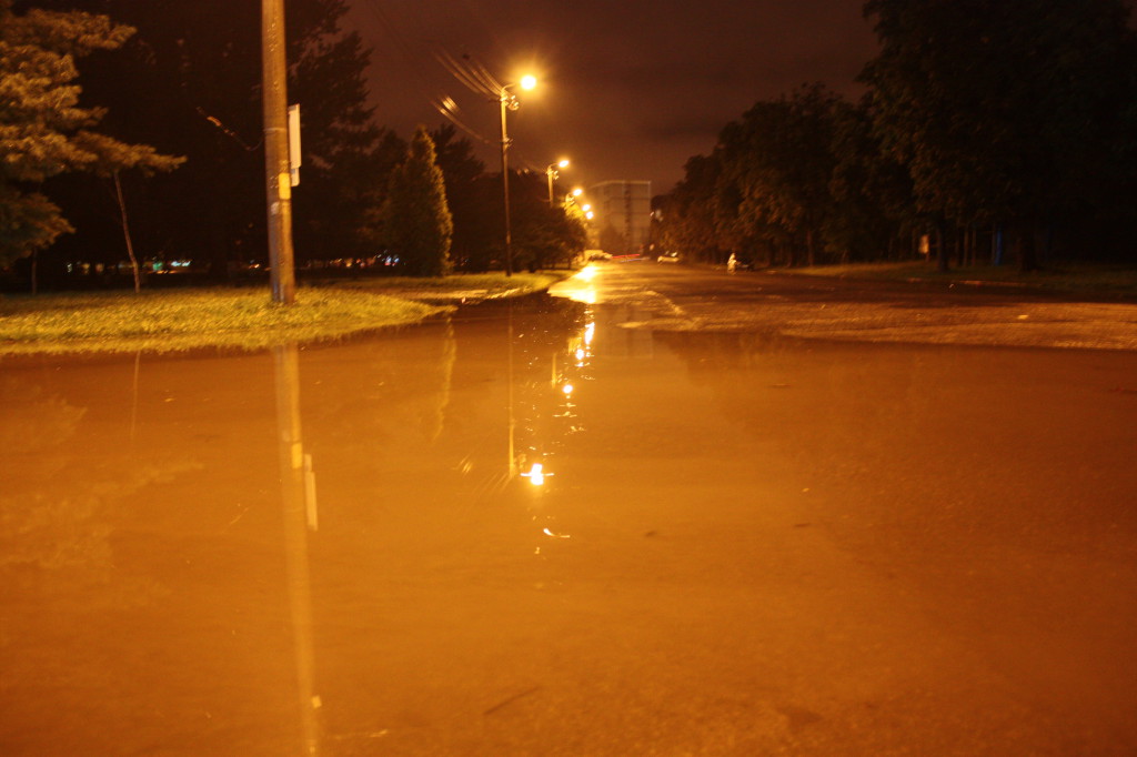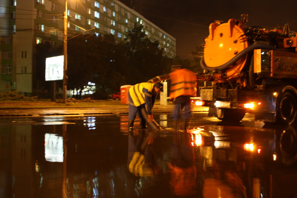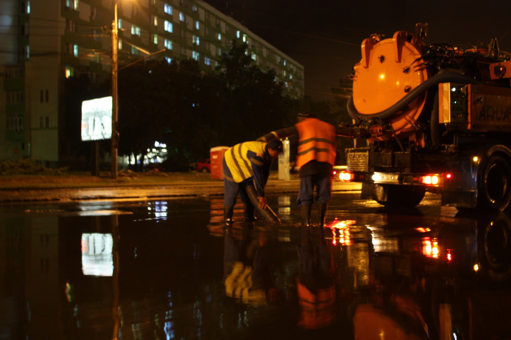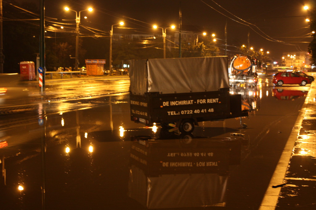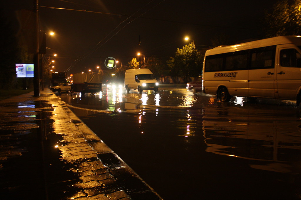 Mai multe străzi din Timișoara au fost inundate, în urma ploilor abundente. Noaptea trecută, după încă o jumătate de oră de ploaie torențială, canalizarea a cedat în mai multe locații din oraș. Pe bulevadrul Liviu Rebreanu, de exemplu, a fost nevoie de intervenția a două echipaje Aquatim pentru a evacua apa strânsă într-o parcare aflată chiar în fața Spitalului Județean. De altfel, mai toată zona din jurul stadionului Dan Păltinișanu a fost inundată în urma precipitațiilor. În unele locuri, pelicula de apă, în parcări, pe șosea și chiar în parcul din zonă, depășea 10 centimetri. Și pe strada Palmierilor din Ghiroda, locuitorii au solicitat ajutorul echipelor de intervenție.