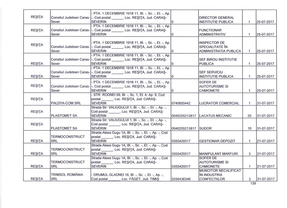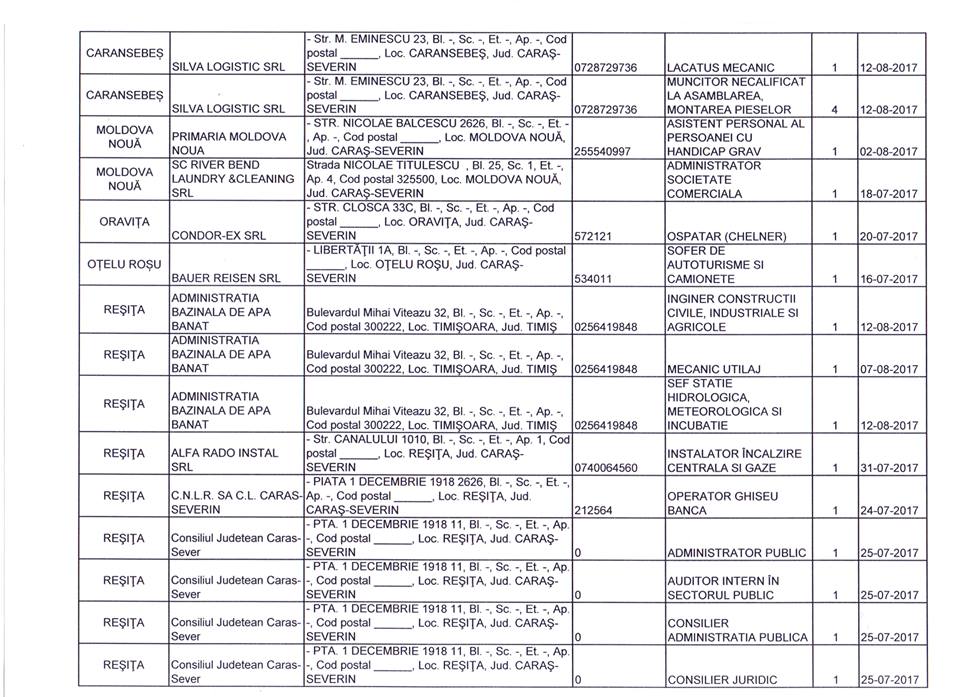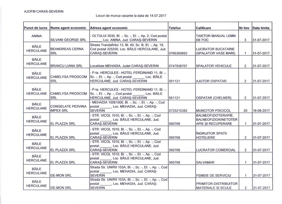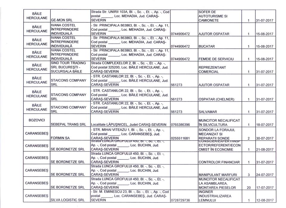 Lista completă cu locurile de muncă vacante poate fi consultată în galeria foto.