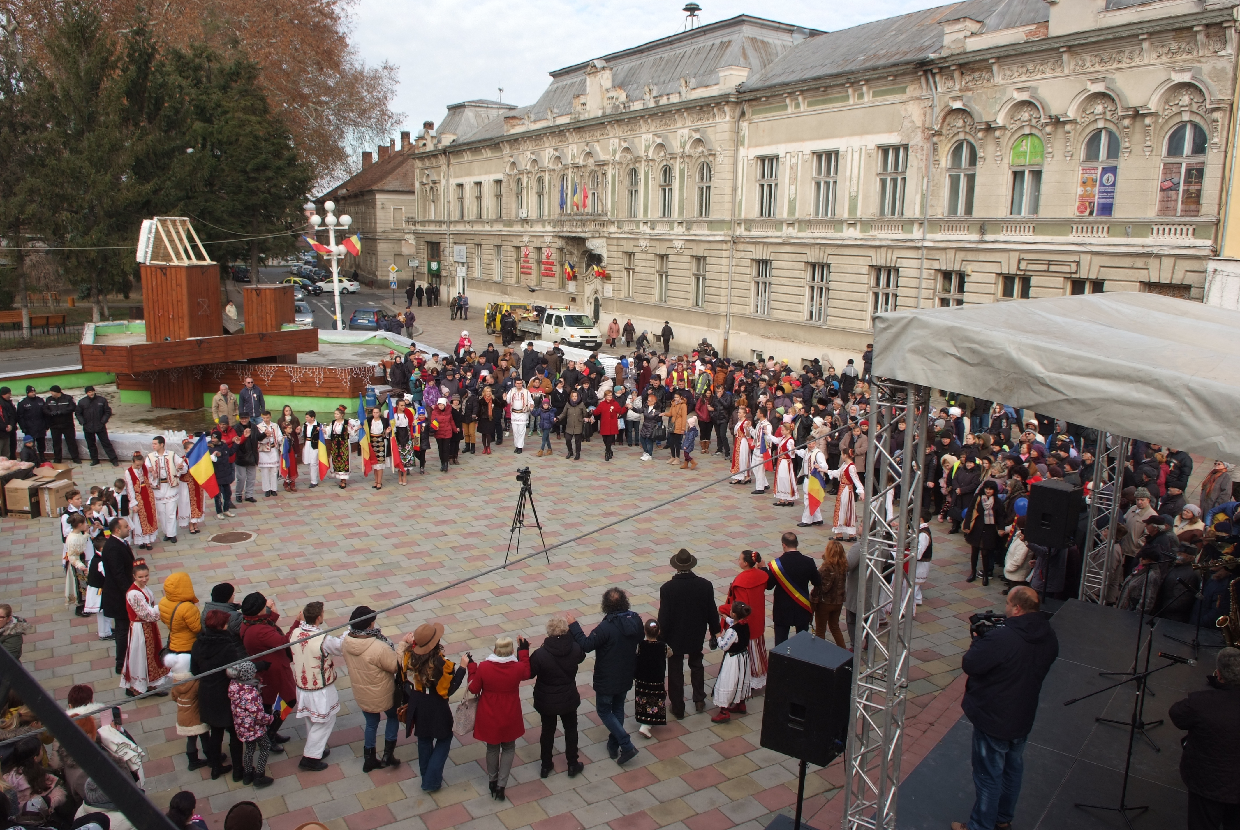 Pe platoul din spatele Casei Orășenești de Cultură a avut loc un spectacol artistic dedicat Centenarului ce a cuprins poezii patriotice, jocuri populare, muzică corală, populară, dar și de fanfară, un adevărat regal artistic, alături de tradiționala fasole cu afumătură, gătită la ceaun și servită caldă celor prezenți.