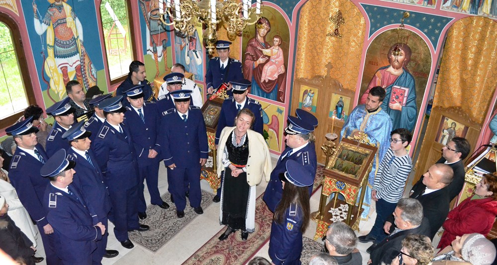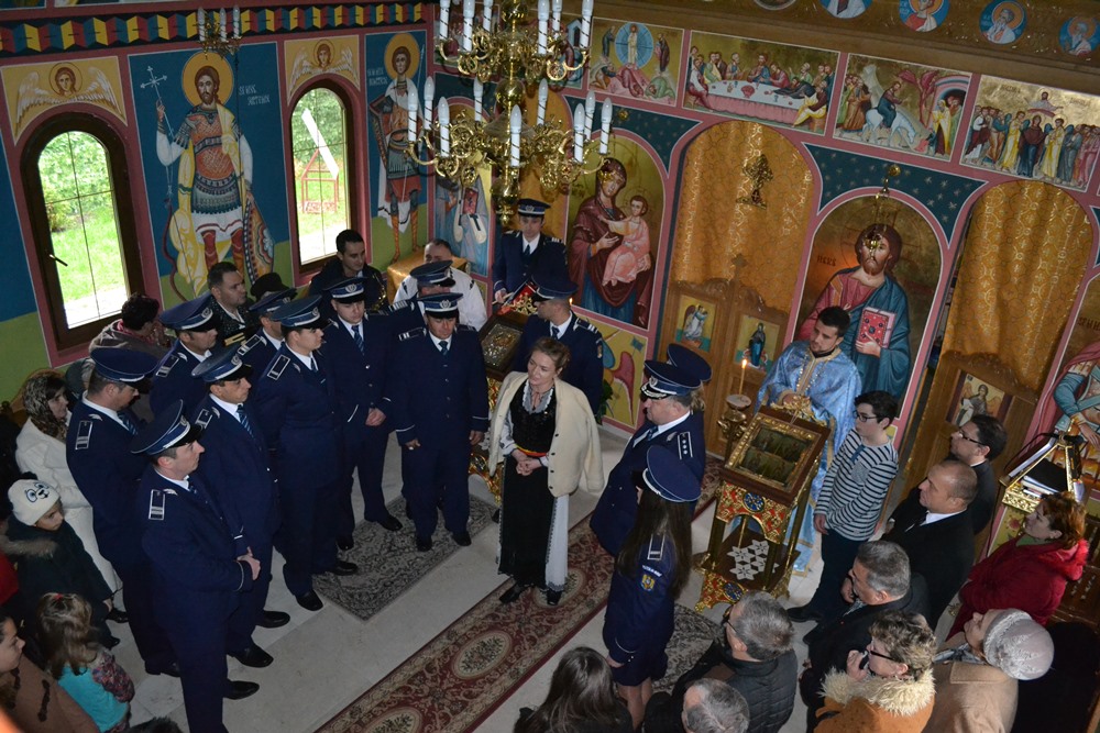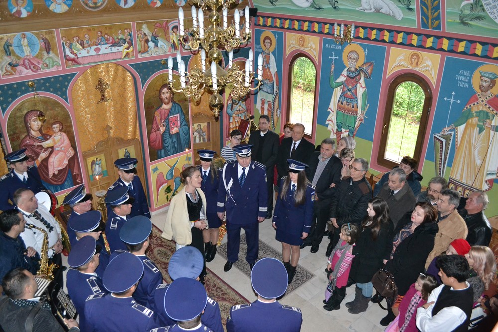 Biserica din lemn din incinta IPJ a fost sfinţită în urmă cu un an şi poartă hramul Sfântul Mare Mucenic Mina, ocrotitorul celor păgubiţi şi cinsteşte memoria tuturor celor care veghează zi şi noapte pentru ordinea şi liniştea comunităţii, în curtea bisericii fiind ridicat unicul monument din ţară dedicat poliţiştilor români.