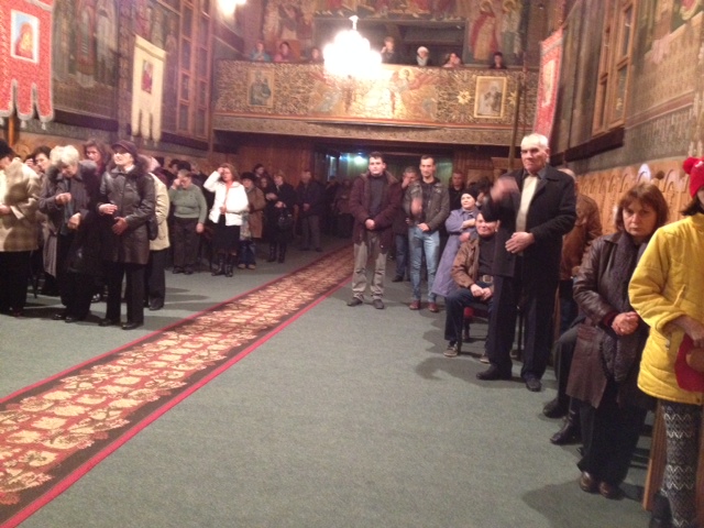 În această seară după liturghie, preoţi din mai multe parohii din judeţ au cântat colinde credincioşilor prezenţi la slujbă. „O ce veste minunata,” ” La Bethleem” dar şi alte colinde tradiţionale au stârnit emoţie credincioşilor prezenţi.