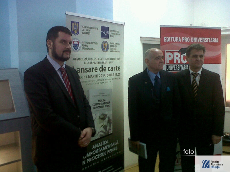 „Analiza comportamentală în procesul penal” este titlul volumului ce a fost lansat astăzi, la Universitatea „Eftimie Murgu” din Reşiţa. Compendiul abordează aspecte complexe şi de actualitate în contextul modificărilor legislative aduse Codului de procedură penală. Lucrarea este structurată în trei părţi şi prezintă profilul psiho-comportamental al autorilor infracţiunilor comise cu violenţă, interogatoriul judiciar şi tehnica aparatului poligraf. Evenimentul de lansare are loc în prezenţa autorilor: prof. univ. dr. psiholog criminalist Tudorel Butoi, comisar-şef dr. Grigore Stolojescu şi lector univ. dr. subcomisar Cristian-Eduard Ştefan.
