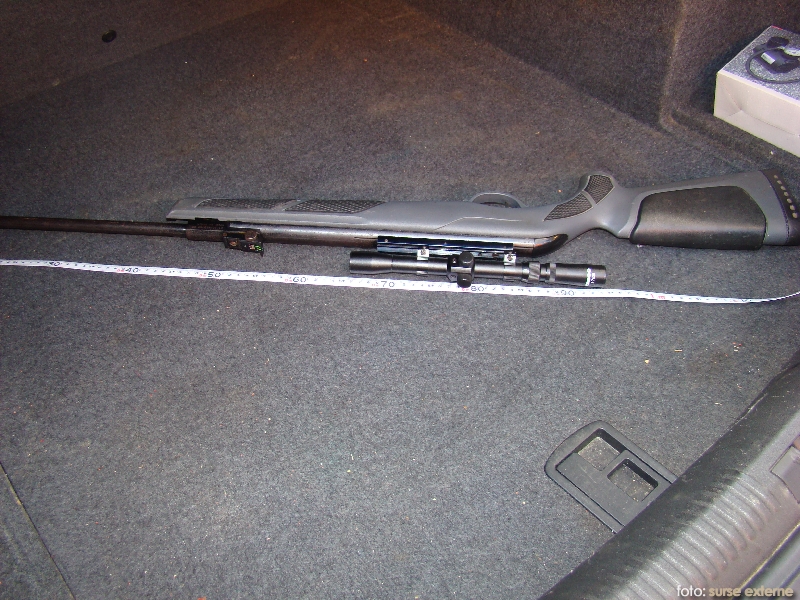 Un tânăr de 26 de ani a fost găsit de poliţişti transportând în portbagajul maşinii o puşcă cu lunetă pentru care nu avea documente de provenienţă. Bărbatul a fost oprit în trafic de poliţiştii de frontieră pe drumul care leagă Oraviţa de Bozovici. El a declarat că arma nu îi aparţine şi că o transportă unei persoane din localitatea Pătaş. Puşca va fi predată Serviciului de Arme şi Muniţii din I.P.J. Caraş-Severin pentru expertiză, iar cărăuşul s-a ales cu dosar penal pentru nerespectarea regimului armelor şi muniţiilor.