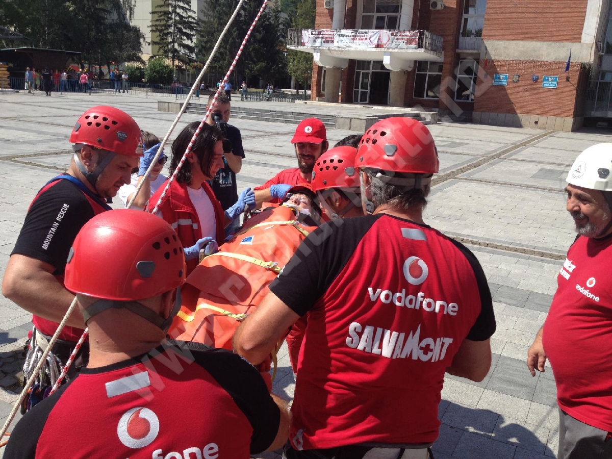 Cel mai spectaculos moment a fost salvarea de la înălţime a unei persoane rănite, aflată în stare de inconştienţă. Aceasta a fost coborâtă pe corzi de pe clădirea Prefecturii, de către salvamontiştii din Reşiţa şi de cei din Caransebeş. Tot în exerciţiul de astăzi au fost acţionate şi dronele Serviciului Voluntar pentru Situaţii de Urgenţă din Caransebeş, care au supravegheat zona calamitată. De asemenea, pompierii din Caransebeş au intervenit cu echipamentele cu care este dotat containerul multirisc pentru a găsi şi salva victimele de sub dărâmături.