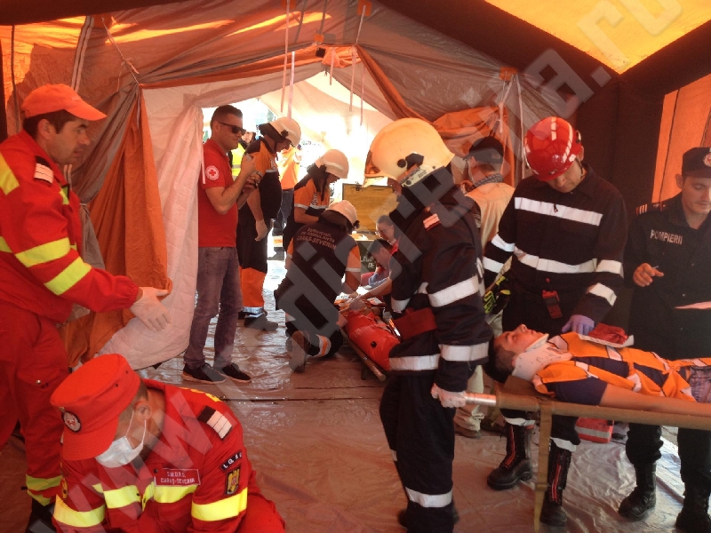 În mai puţin de 8 minute, din momentul în care au sunat sirenele, Piaţa 1 Decembrie 1918 a fost invadată de autospecialele salvatorilor: maşini de intervenţie a pompierilor, ambulanţe, autosanitare SMURD, maşini de poliţie, poliţie locală, jandarmi şi salvamont.