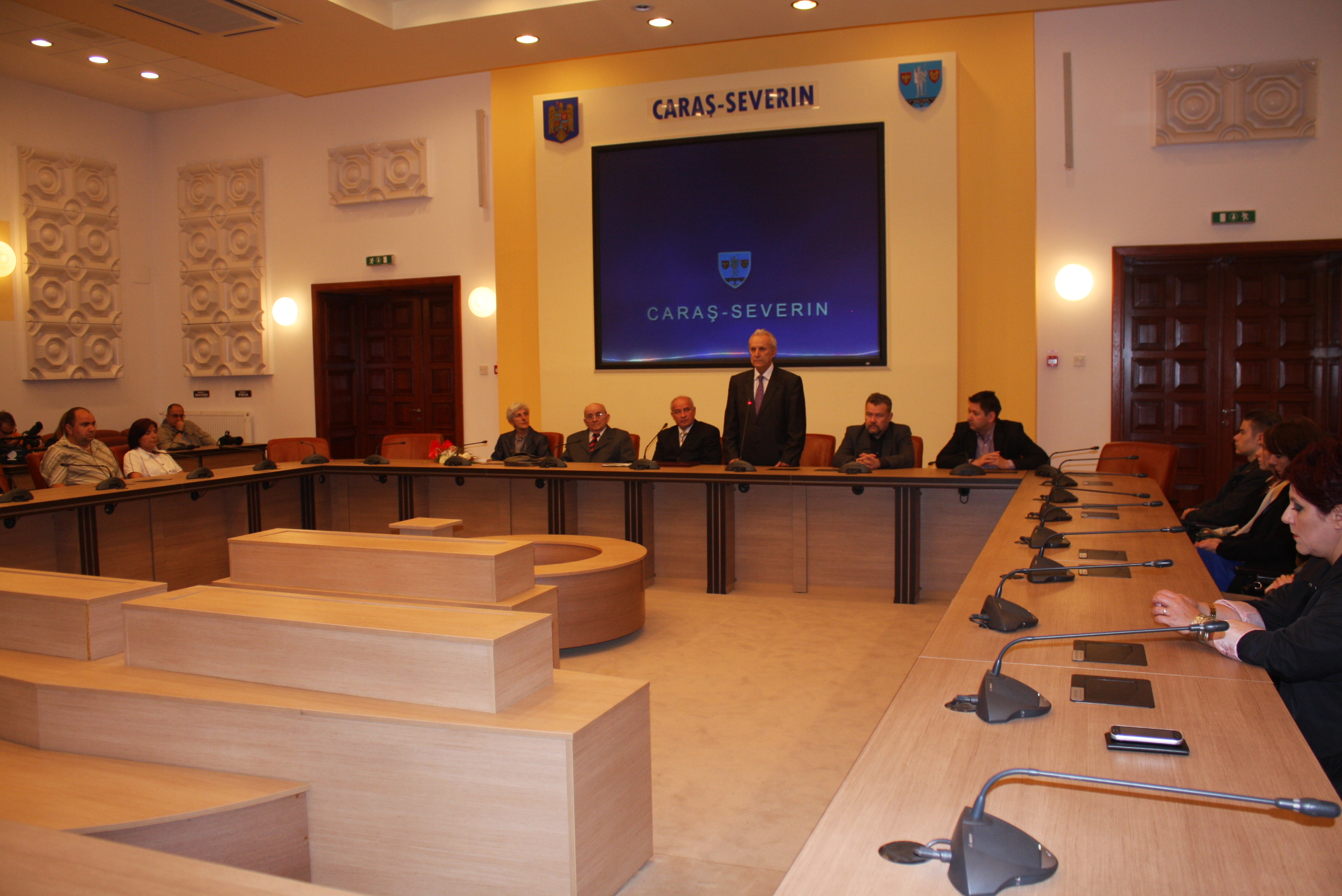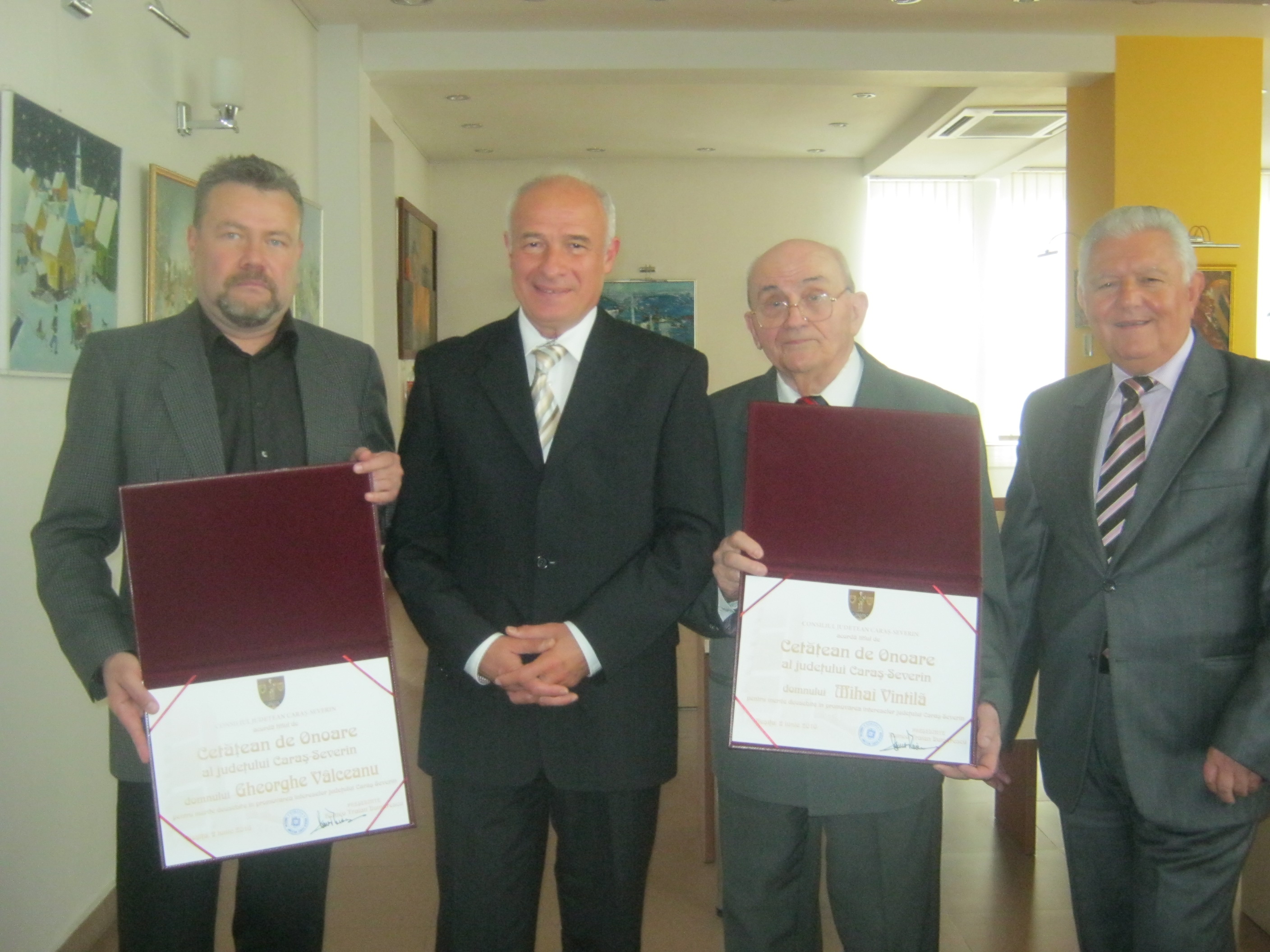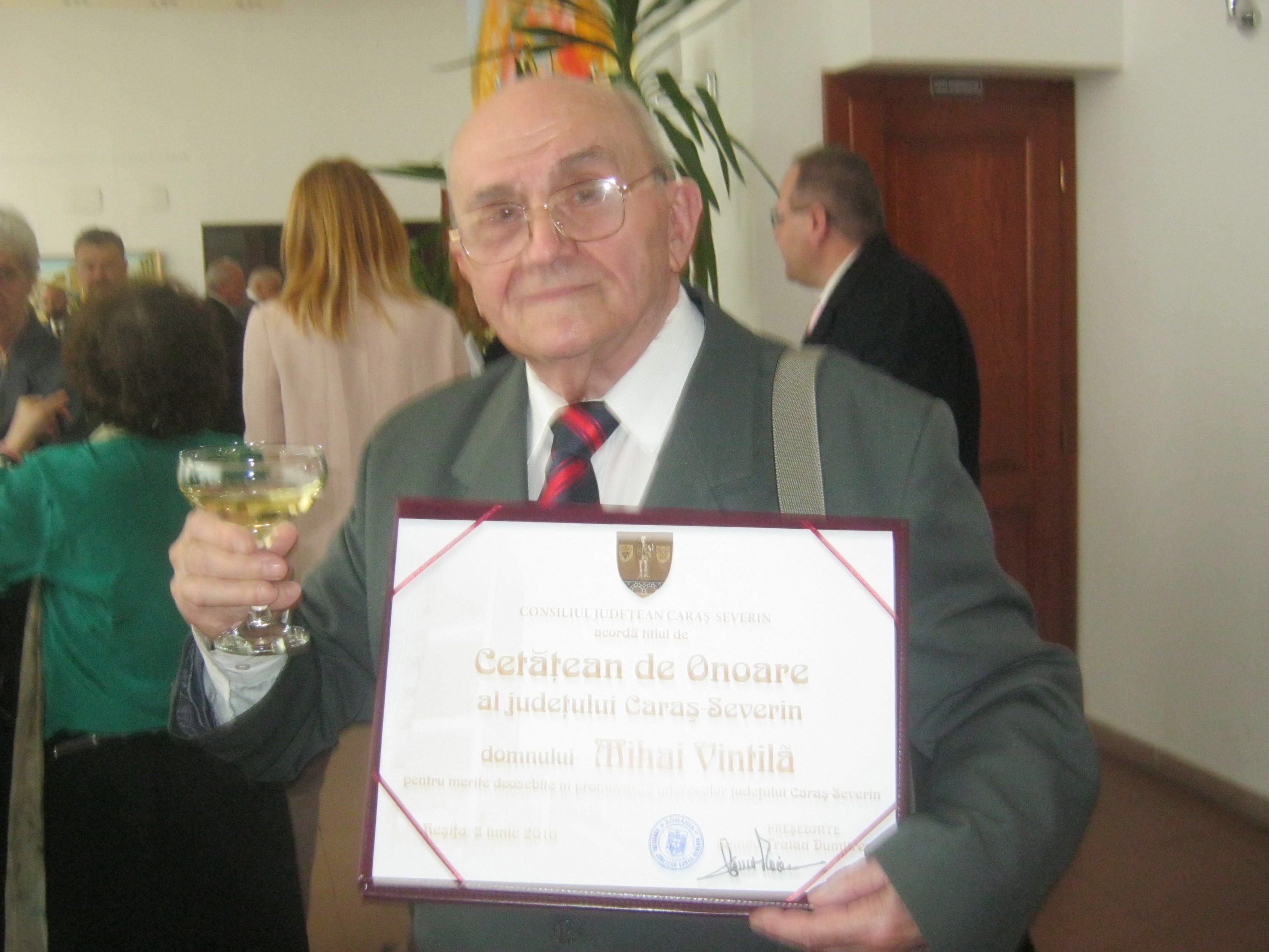 Festivitatea decernării titlului de „Cetăţean de Onoare al Judeţului Caraş-Severin” a fost însoţită şi de o miniexpoziţie în foaierul Sălii de şedinţe a Palatului Administrativ, unde pictorul Mihai Vintilă a prezentat publicului câteva lucrări. (Alexandra Gorghiu)