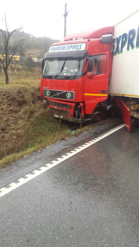 Momentan traficul este blocat pe DE70, în dreapta Km 394+500, pe dealul Cerăgăului, din cauza unui tir, care a alunecat din cauza umezelii. Incidentul s-a produs în apropiere de Herculane, pe fondul neadaptării la condițiile de carosabil umed.