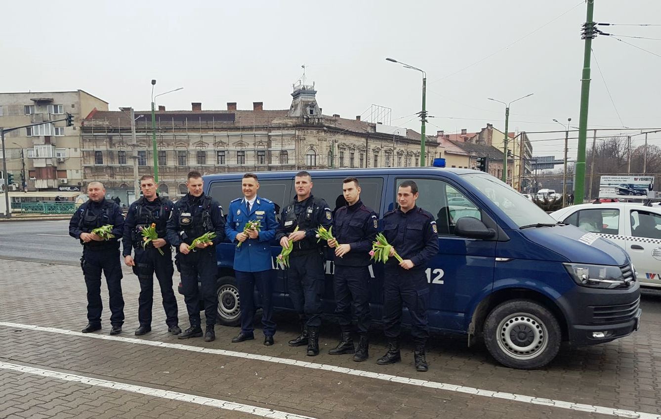 Cu prilejul Zilei de 8 martie, echipajul din cadrul Inspectoratului de Jandarmi Județean Arad, aflat în serviciu de ordine și siguranță publică, a ,,sancționat” cu flori, doamnele și domnișoarele surprinse în zona Catedralei Sfânta Treime din municipiul Arad.