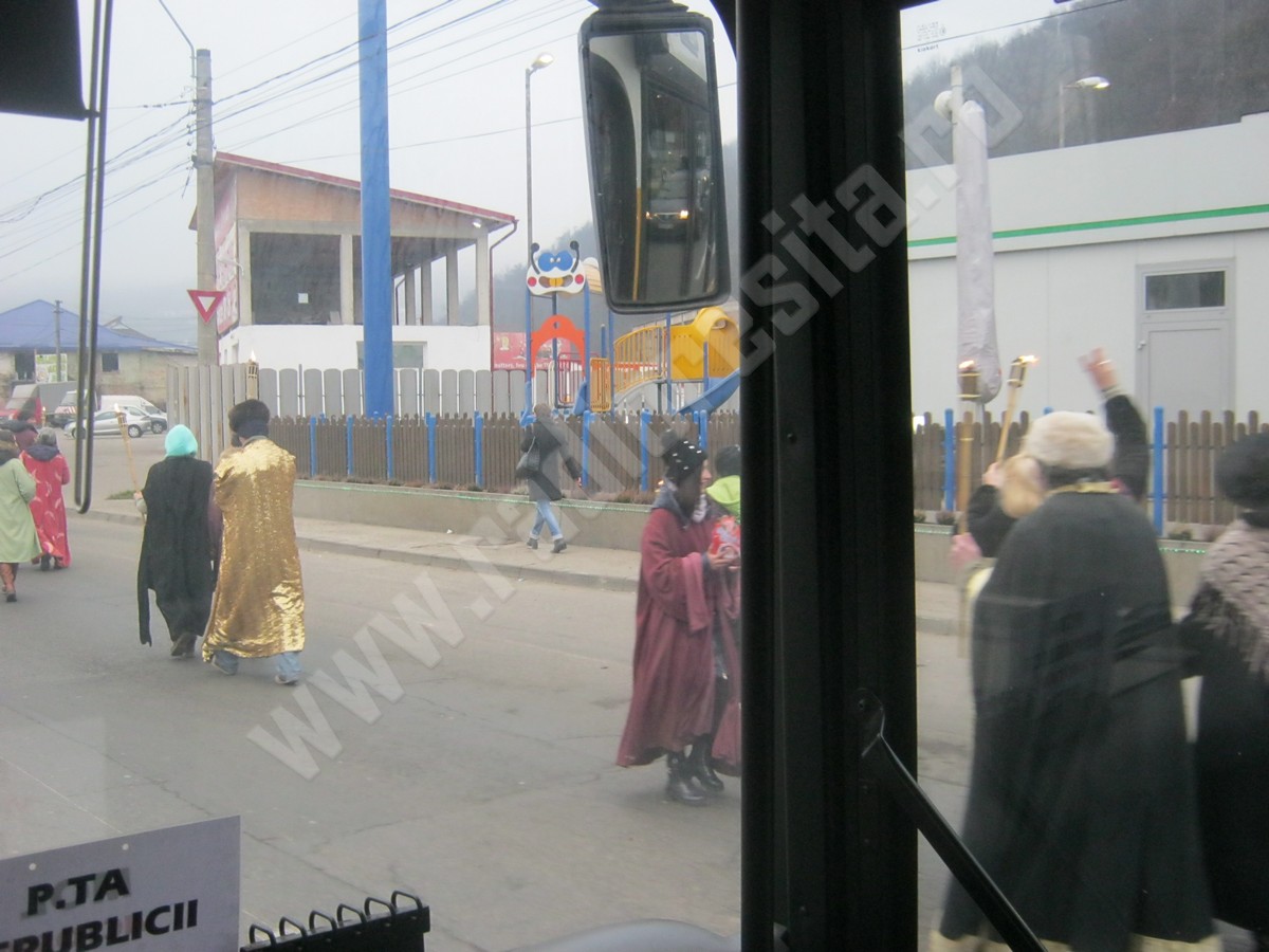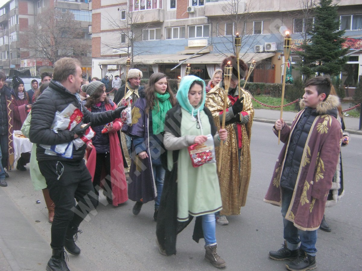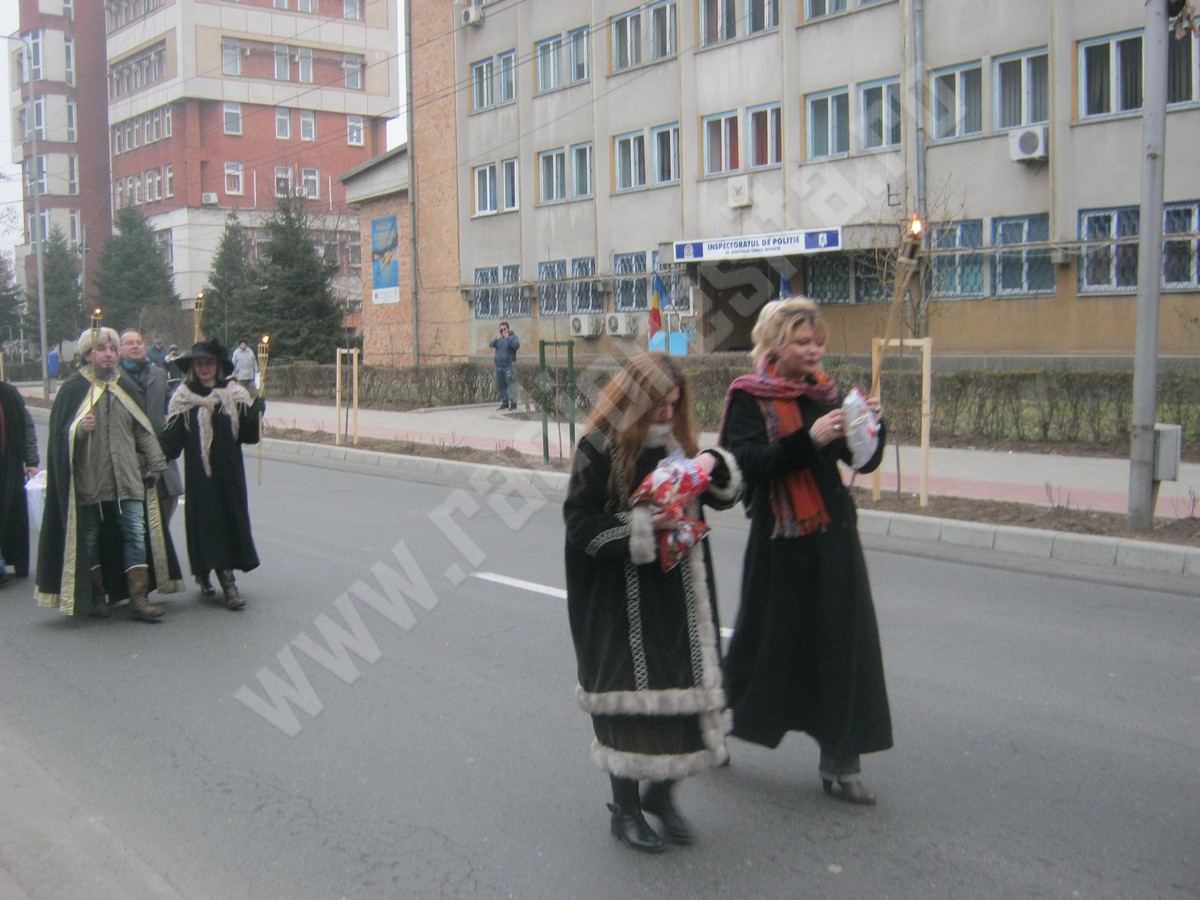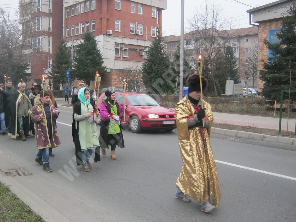 O iniţiativă inedită a Teatrului de Vest Reşiţa a adus ieri oamenilor zâmbete şi bucurie pe arterele principale ale municipiului de pe Bârzava. Actorii, colaboratorii şi copii Cercului dramatic al Teatrului au format un alai costumaţi în personaje biblice şi au parcurs într-un pelerinaj-spectacol „Drumul Fecioarei Maria prin Betleem”. Cu torţe în mâini ei au evocat în acest fel cel mai important eveniment din istoria creştinătăţii. Trupa de actori a împărţit oamenilor de pe stradă cozonaci şi bomboane de ciocolată, mulţumind publicului că i-a fost alături în acest an, la spectacolele şi acţiunile instituţiei, aşa cum a declarat directorul artistic al Teatrului de Vest, actorul Dan Mirea: