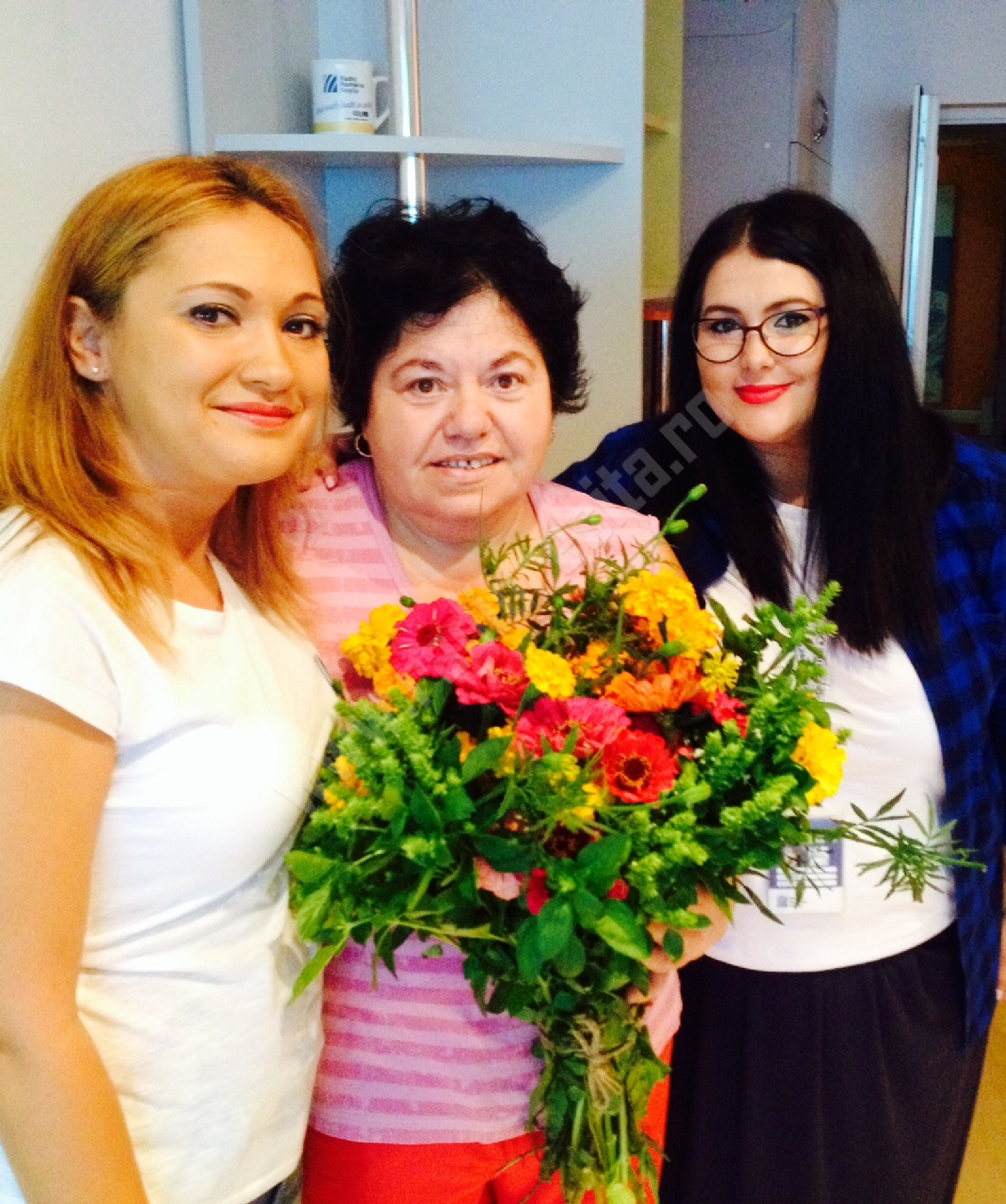 De la primele ore ale dimineţii, la redacţie am fost plăcut surprinşi de Tanti Anuţa, care a venit tocmai din Secăşeni să ne ofere un imens buchet de flori cu ocazia împlinirii a 20 de ani de activitate. Vizibil emoţionată doamna Nuţa a ţinut să ne demonstreze că este un ascultător fidel şi nu schimbă niciodată postul de pe 105,6 fm.