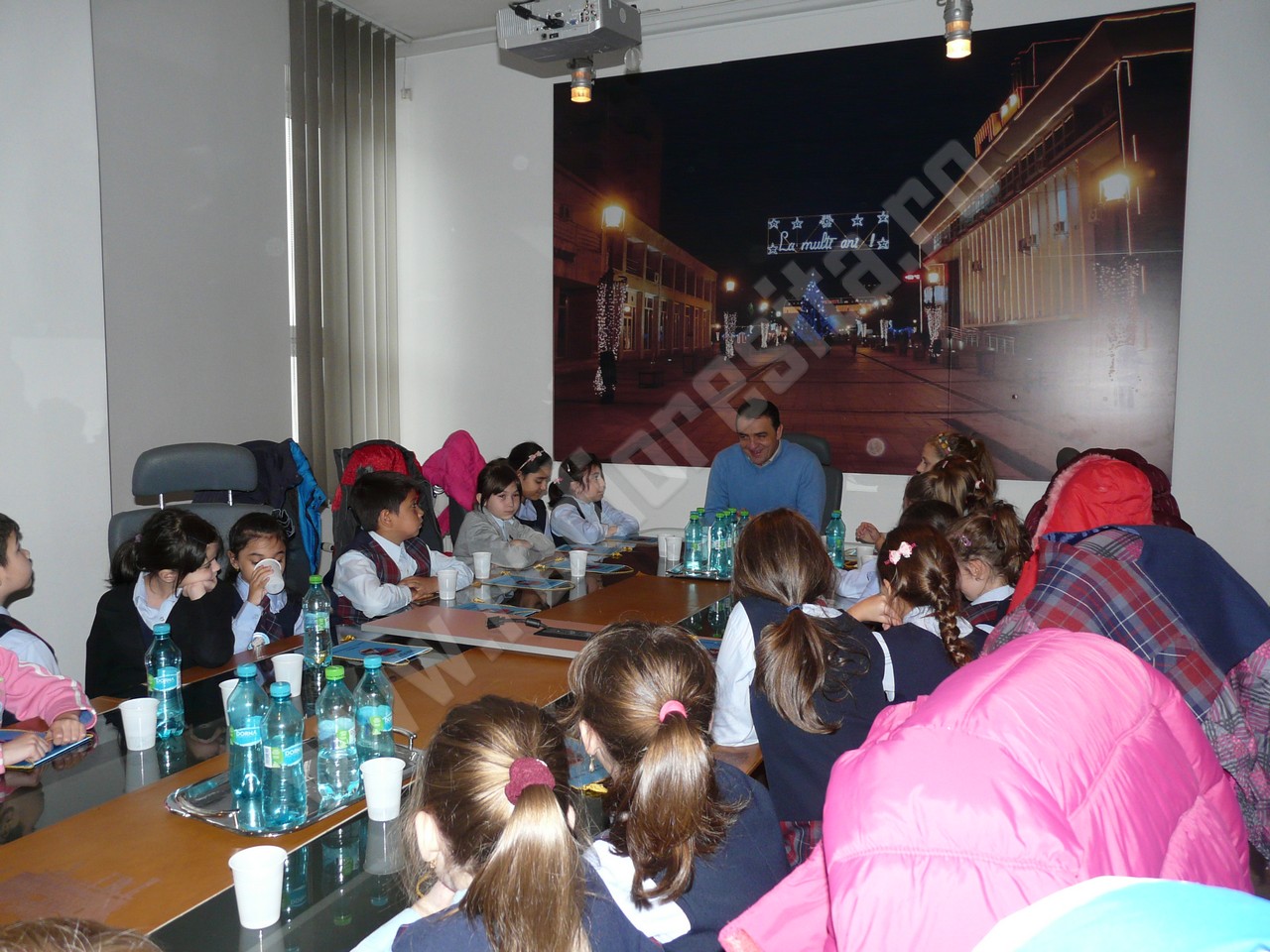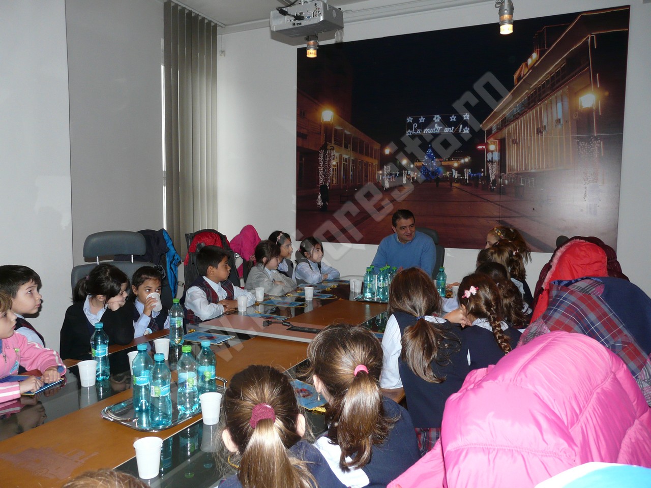 Un grup de elevi de la Şcoala Gimnazială nr. 2 din Reşiţa au fost marţi, 18 noiembrie, în vizită la Primăria municipiului. Şcolarii din clasa întâi şi a treia, înscrişi în proiectul „Călători în lumea meseriilor”, au fost primiţi de primarul Mihai Stepanescu. Cu acest prilej, elevii au aflat aspecte generale despre specificul activităţii într-o administraţie publică locală.