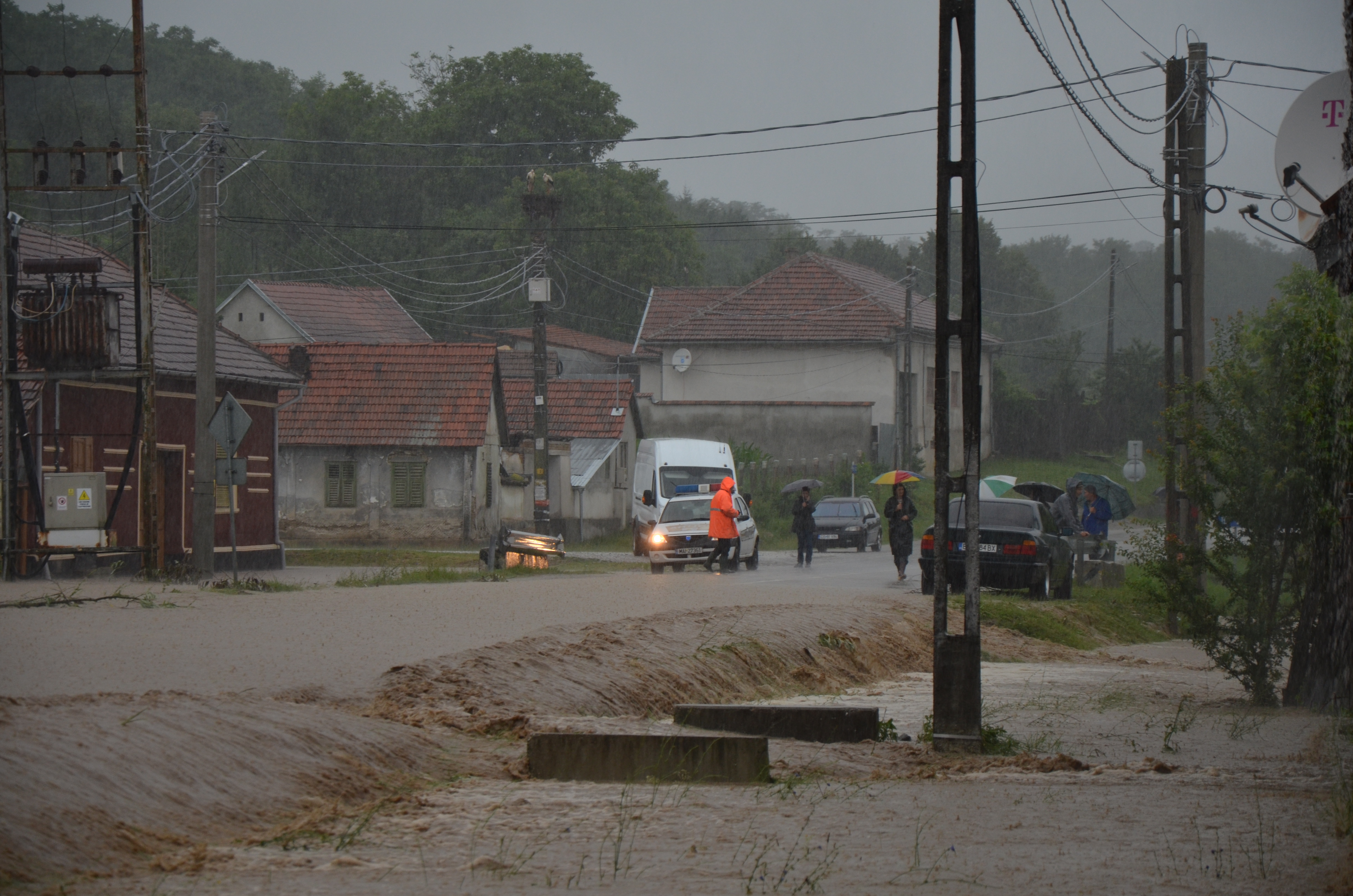 Din fericire, la ora actuală angajații de la Apele Române chiar lucrează în centrul comunei la regularizarea pârâului Tău, pe partea de intravilan a localității. Lucrarea a fost începută cu câteva zile în urmă și chiar în zona din spatele Bisericii și a Căminului Cultural a fost ridicat digul, ce ieri a protejat destul de bine zona respectivă. Dacă nu era zidul respectiv, lucrurile erau și mai grave. Lucrările vor continua în următoarele săptămâni, dar se au în vedere și afluenții Tăului pentru decolmatare”.