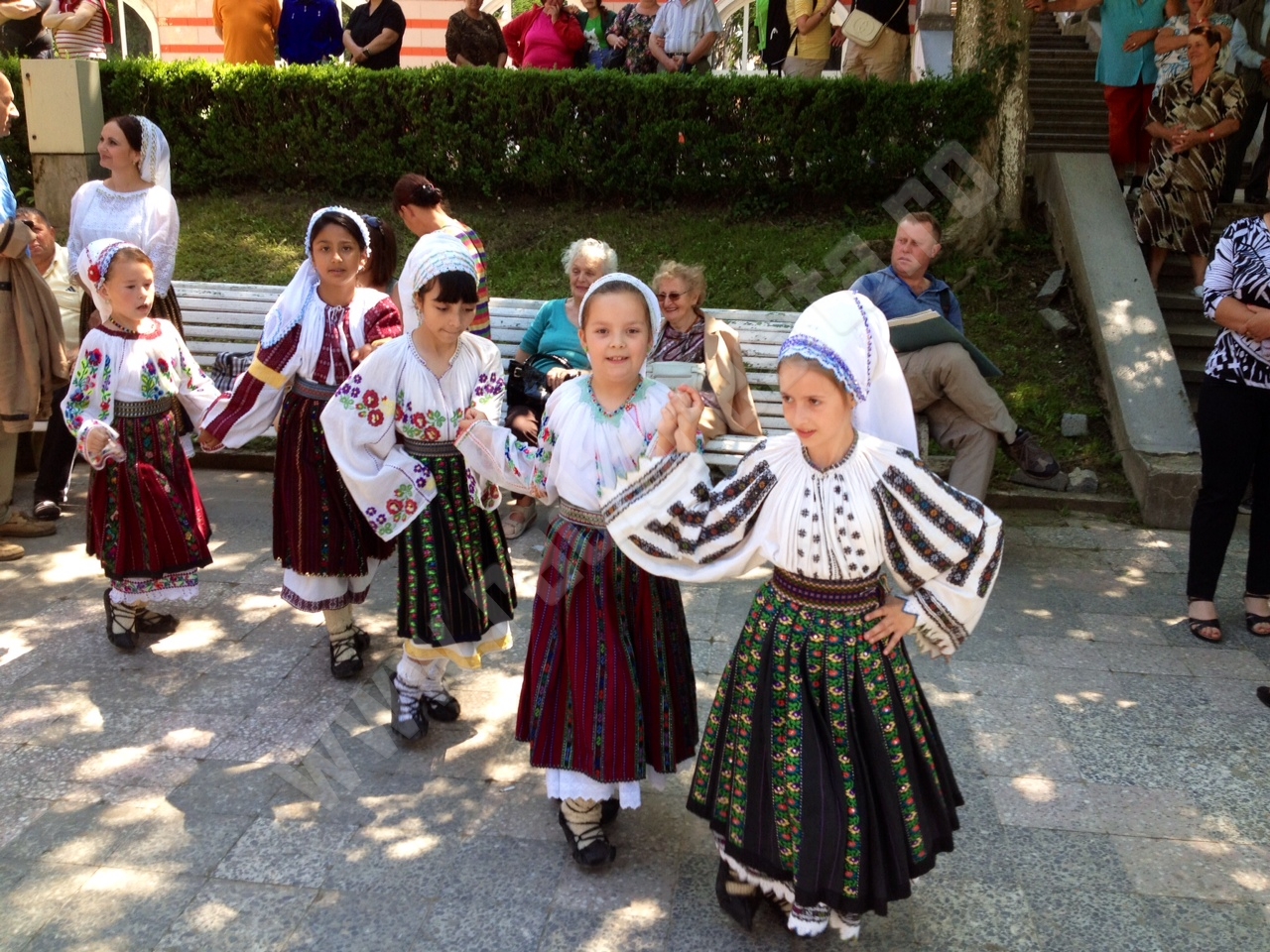 Vremea foarte frumoasă a adus în Centrul Istoric al staţiunii un mare număr de localnici, dar mai ales turişti aflaţi în această perioadă pe Valea Cernei! Programul folcloric a fost unul de înaltă valoare, susţinut de formaţiile artistice de copii şi tineri venite din comunităţile locale de pe raza Parcului Naţional Domogled-Valea Cernei : Băile Herculane şi Cornereva (jud.Caraş-Severin), Padeş şi Tismana (jud. Gorj), Baia de Aramă, Ponoare, Isverna, Obârşia Cloşani (jud. Mehedinţi). Zona folclorică a Olteniei este bine reprezentată în cadrul acestui festival, deoarece Parcul Naţional Domogled-Valea Cernei ocupă suprafaţa a trei judeţe : Gorj, Mehedinţi şi Caraş-Severin. Dansatorii şi soliştii vocali au fost apreciaţi la scenă deschisă de către spectatori, care au rămas până la finalul spectacolului!