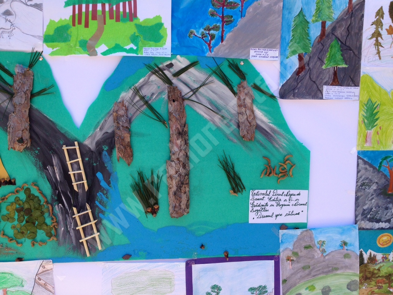 De asemenea, pe aleile Parcului Central au fost amplasate standuri expoziţionale cu lucrările elevilor înscrişi la concursul organizat în mod tradiţional în cadrul festivalului, având temă chiar Pinul Negru de Banat. Au fost expuse pe durata întregii zile desene, picturi pe piatră şi sticlă, fotografii, poezii şi eseuri cu şi despre sărbătoritul zilei pe Valea Cernei. Un juriu al festivalului a notat fiecare lucrare, organizatorii acordând premii, constând în diplome, cărţi, rechizite şi dulciuri, pe următoarele categorii : desen, fotografie, eseu şi poezie, participanţii fiind elevii şcolilor din comunităţile situate pe raza Parcului Naţional Domogled-Valea Cernei.