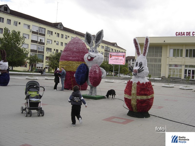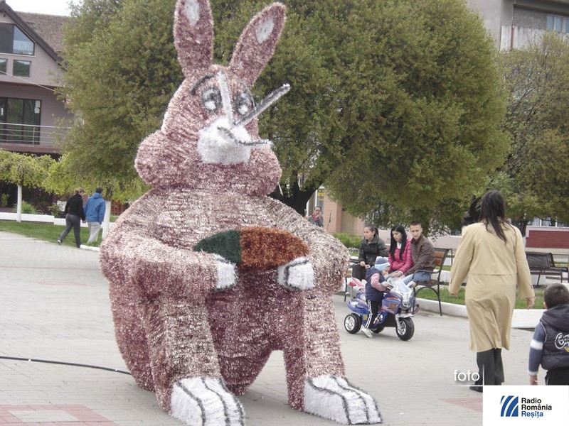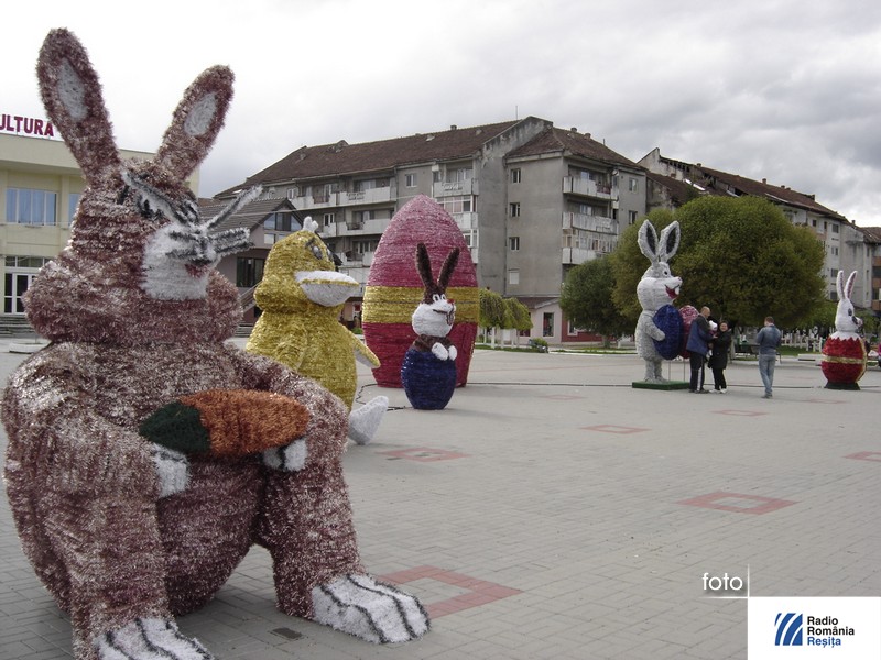 Zece figurine de dimensiuni impresionante, reprezentând iepuri, ouă dar şi alte imagini specifice sărbătorilor pascale, fac deliciul trecătorilor. Figurinele, cu o înălţime de 4 metri, au fost realizate în regie proprie de către angajaţii primăriei. Comparativ cu anul trecut, numărul obiectelor decorative s-a triplat, ne-a declarat primarul oraşului de pe Valea Bistrei, Luca Mălăescu. (Cornelia Vlaicu)