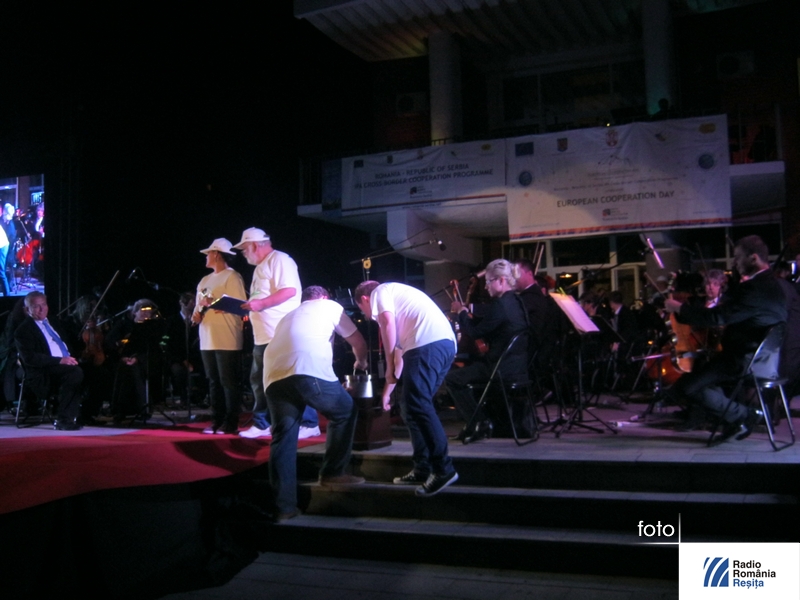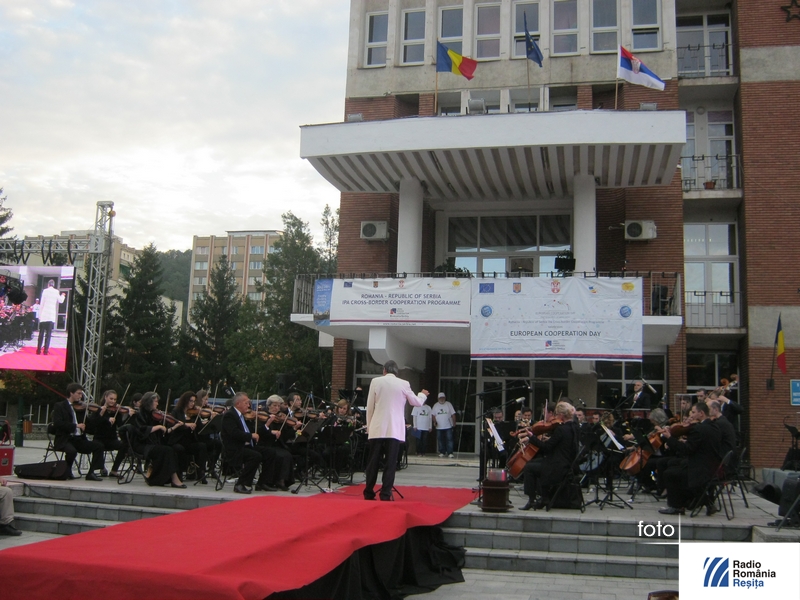 Organizatorii au oferit reşiţenilor o seară magică, în faţa Consiliului Judeţean fiind amplasată o scenă pentru concertul extraordinar al Orchestrei Filarmonicii „Banatul”. Muzica a răsunat în Piaţa 1 Decembrie 1918, lumea adunându-se cu mic cu mare în Centrul Civic pentru a se bucura de primul concert în aer liber susţinut la Reşiţa de Filarmonica „Banatul”. Dirijată de Peter Oschanitzky orchestra a cântat un program cu lucrări Bizet, Mozart, Edvard Grieg, I.Strauss-fiul, Rossini şi Puccini, în finalul concertului, directorul general al Filarmonicii, Ioan Coriolan Gârboni, invitându-l pe scenă pe dirijorul Corului „Gavriil Musicescu” al Filarmonicii din Iaşi, profesorul şi compozitorul Doru Morariu, pentru a dirija Imnul Europei la pupitrul Orchestrei şi Corului Filarmonicii „Banatul”. Între reprizele de muzică a avut loc o prezentare de modă, pe covorul roşu defilând manechine purtând cu eleganţă şi rafinament costume stilizate de inspiraţie tradiţională româno-sârbe din zona de graniţă, creaţii semnate de Cătălin Botezatu, Milanka Berberovic şi Ruzica Ristic.