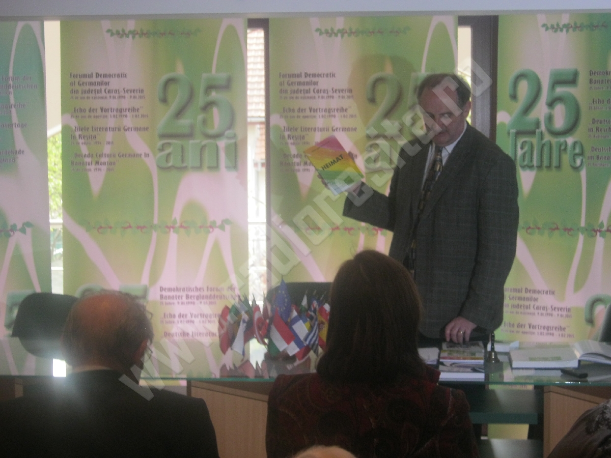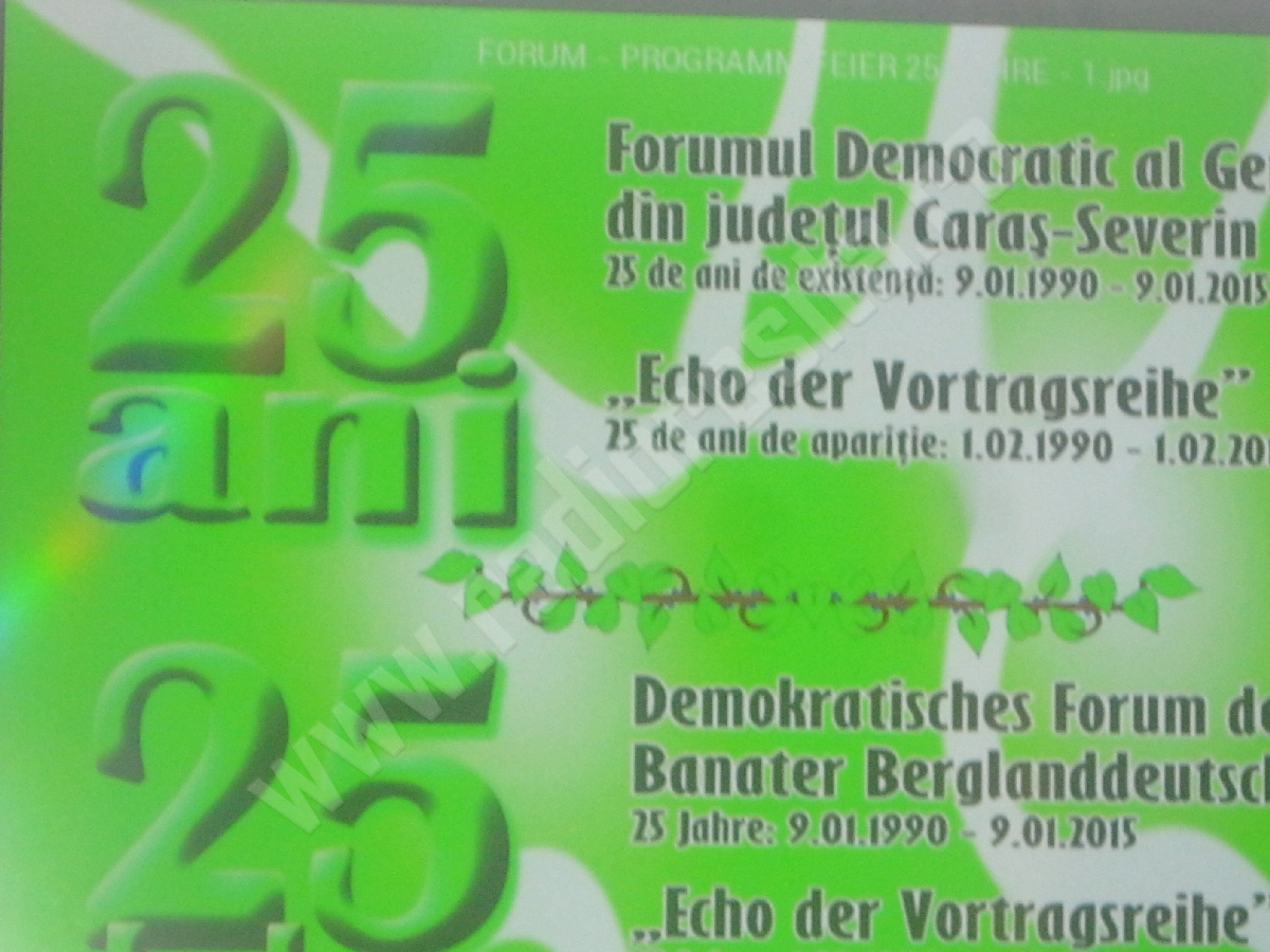 Un sfert de veac de activitate a Forumului Democratic al Germanilor din Caraş-Severin şi 25 de ani de la apariţia primului număr al revistei de cultură “Ecoul Asociaţiei” au fost marcaţi vineri, 24 aprilie la Biblioteca germană “Alexander Tietz” din Reşiţa. În cadrul evenimentului a avut loc prezentarea volumului “Locul natal” – cea de-a 64–a apariţie editorială a Asociaţiei Germane de Cultură şi Educaţie a Adulţilor Reşiţa şi o bibliografie – o colecţie reunită a tuturor numerelor revistei asociaţiei reşiţene în intervalul 1990-2014.