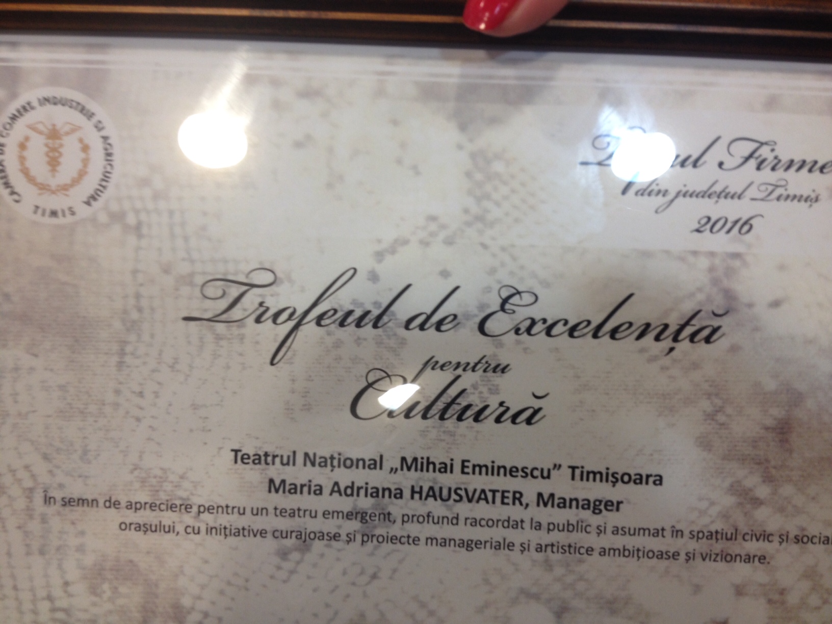“Sunt bucuroasă pentru Teatrul Naţional, sunt bucuroasă pentru publicul din Timişoara, aşa cum sunt de fiecare dată când îmi recapăt încrederea că până la urmă cultura şi educaţia au un rol esenţial în societatea noastră şi se vede importanţa acestui fapt. Cred că Teatrul Naţional din Timişoara este unul dintre teatrele locomotivă, şi-a asumat şi îşi asumă în continuare un rol de deschizător de drumuri, păstrându-şi în acelaşi timp locul său, de a nu-şi aroga alte poziţii şi îşi doreşte în continuare să formeze oameni, caractere, să pună întrebări şi să-i convingă publicul să se întoarcă la teatru, pentru că prin teatru şi prin imaginaţie ne vom dezvolta şi vom deveni mai bogaţi.După ce ne vom cultiva în interior, cu siguranţă şi în jurul nostru se vor schimba lucrurile”.