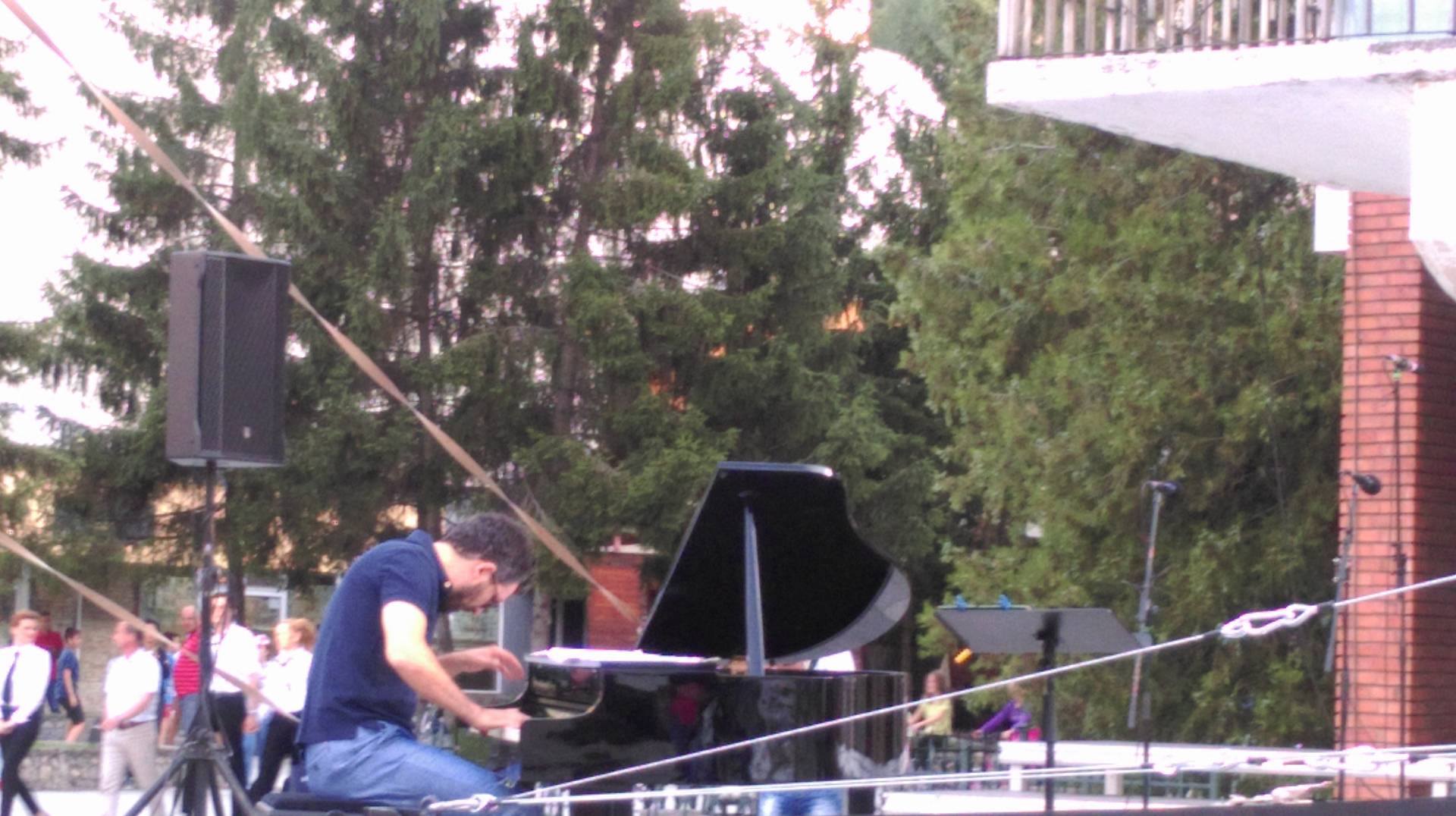 Emoţionat şi emoţionant momentul a continuat cu muzică pentru pian, compusă de artist. Pentru a ne convinge că este fericit să cânte din nou la Reşiţa, Teo Milea a cântat alături de Ionuţ Cădariu, flautistul filarmonicii din Arad, o excepţională compoziţie intitulată „Azi, mâine” …dulci nuanţe europene ce au clipocit peste apele oceanului oglindindu-şi emoţia în seninul cerului, unul pentru toţi ca şi muzica, pentru că muzica nu are graniţe, ea este pururi azi, mâine oriunde altundeva…
