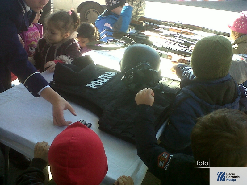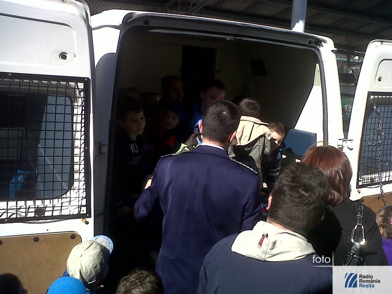 Elevii de la şcolile sau grădiniţele de pe raza municipiului Reşiţa au avut ocazia să vadă laboratorul criminalistic, autospeciala cu aparatura de supraveghere video, “duba” de la Centrul de Reţinere şi Arestare Preventivă, precum şi autovehiculul şi dotarea celor de la Serviciul pentru Acţiuni Speciale. Ca în fiecare an, cel mai spectaculos moment a fost exerciţiul celor de la “mascaţi” întrucât au simulat prinderea unui grup infracţional şi au arătat metodele de imobilizare şi încătuşare a infractorilor. Doi elevi de liceu, de la Colegiul Economic al Banatului Montan au fost recrutaţi de mascaţi pentru a demostra că şi ei pot parcurge un traseu cu obstacole în cel mai scurt timp. Pentru curajul lor, au fost răsplătiţi cu diplome.