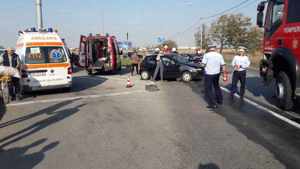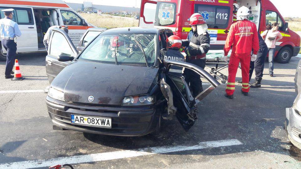 Accidentul rutier a avut loc în localitatea Ghiroda, pe drumul spre Aeroportul Internaţional Timişoara, fiind implicate două maşini. Potrivit poliţiştilor, o femeie în vârstă de 71 de ani, aflată la volanul unui autoturism, nu a acordat prioritate la ieşirea din parcare şi a lovit un autoturism care circula regulamentar şi în care se aflau cinci persoane.