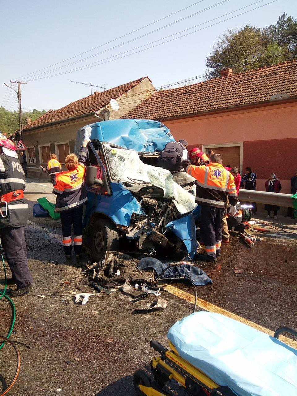Mai multe echipaje de poliţie se află la faţa locului şi efectuează cercetări sub aspectul săvârșirii infracțiunii de vătămare corporală din culpă.