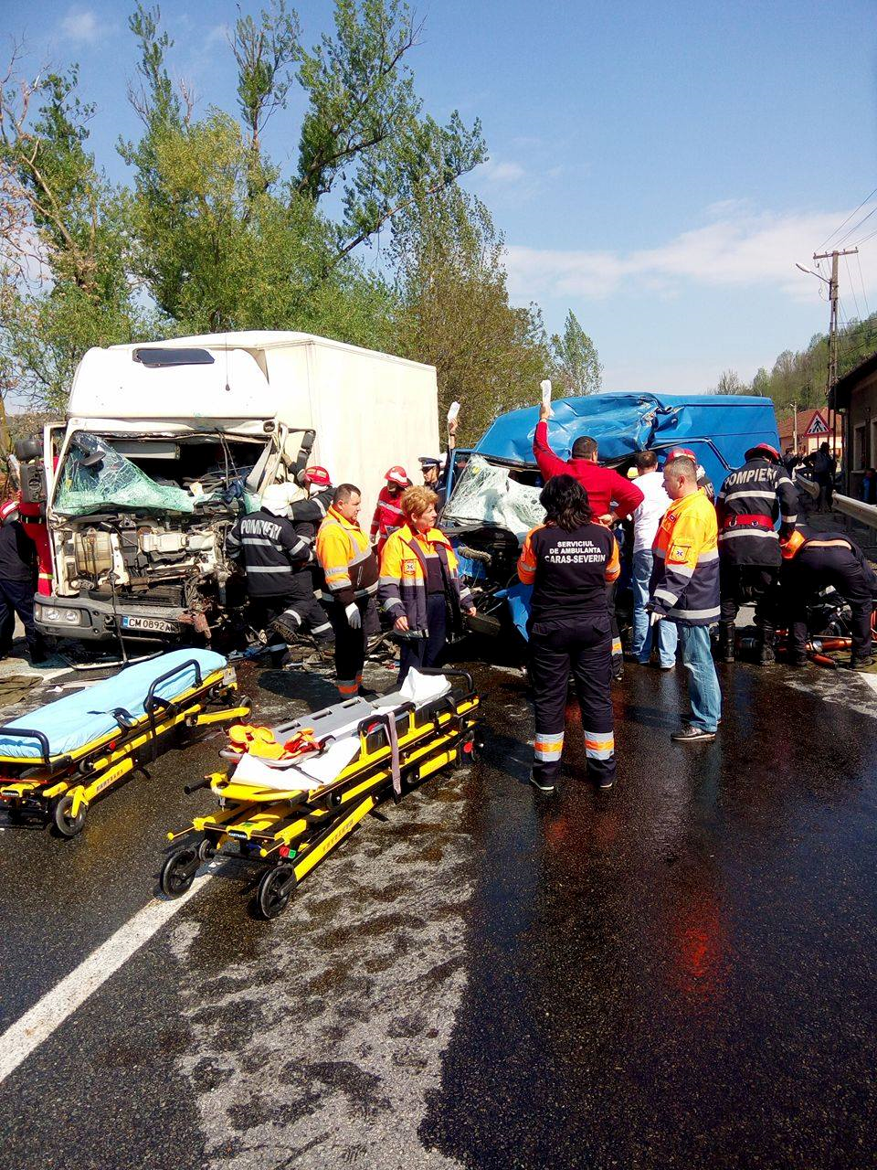 Deşi vehiculele au fost scoase în afara drumului, pe carosabil se află la această oră (12.40) un elicopter Smurd venit pentru a evacua unul dintre răniţi. Este vorba de tânărul de 26 de ani care va fi transportat la Spitalul Județean din Timișoara. Şoferul autoutilitarei înmatriculate în Bulgaria a fost transportat la spitalul din Caransebeș, iar cei doi pasageri, la spitalul din Drobeta Turnu Severin. Traficul este blocat pe ambele sensuri de mers.