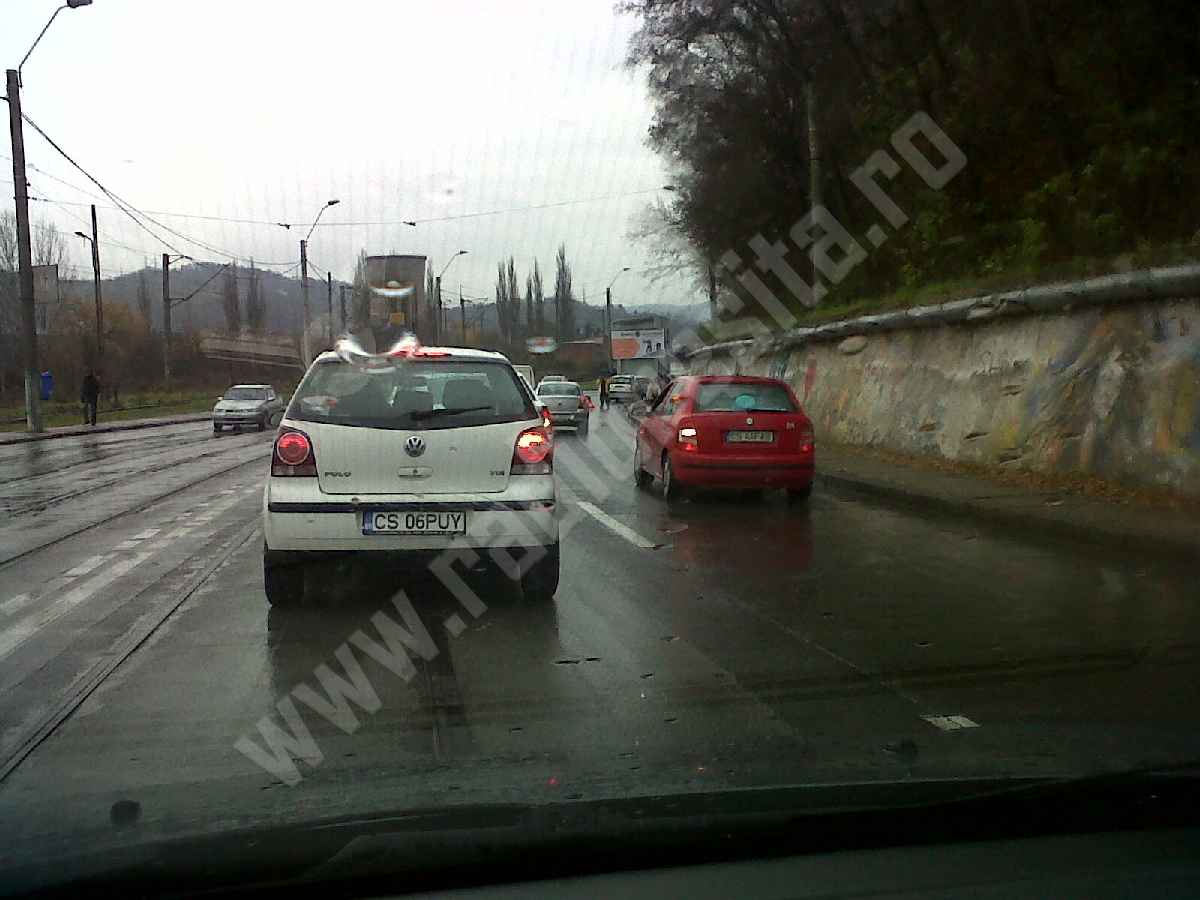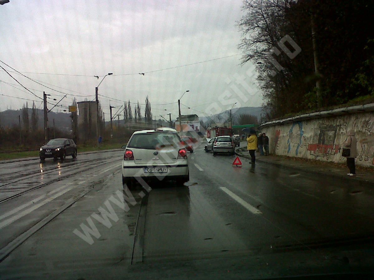 Un autoturism care se deplasa sâmbătă, în jurul orei 13.00, din Centrul Civic al municipiului Reşiţa spre cartierul Lunca Bârzavei, din cauza vitezei şi a carosabilului umed, a pătruns pe contrasens, în Triaj, şi a acroşat două autovehicule care circulau din sens opus. În urma accidentului, două victime, din care una probabil cu fractură, au ajuns la Spitalul Judeţean de Urgenţă Reşiţa. Cei trei şoferi au fost verificaţi cu etilotestul, iar rezultatul a fost negativ.