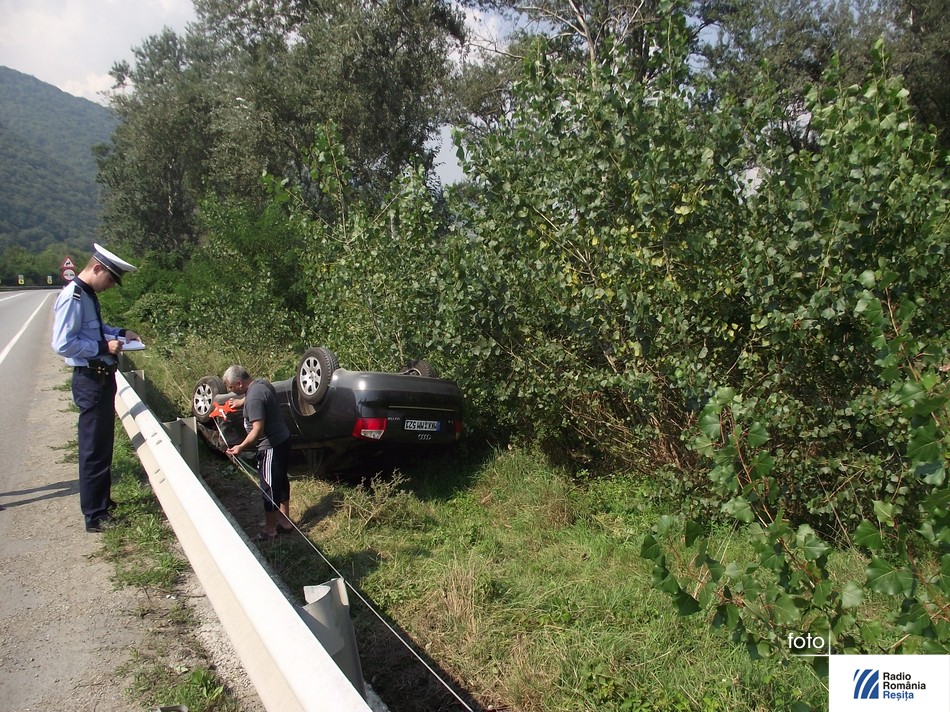 Astăzi în jurul orei 14.20, pe DN 6, între Băile Herculane și Topleț – la locul numit „drumul rupt”, a avut loc un grav accident de circulație, soldat cu rănirea unei persoane. Accidentul s-a produs pe fondul unui viraj necorespunzător efectuat la stânga, de către șoferul unui autoturim Opel Vectra, înmatriculat în Caraș-Severin și care se deplasa de la Băile Herculane înspre Topleț. Conducătorul auto a acroşat, cu partea din față stânga, un autoturism Audi, înmatriculat în Germania. Bărbatul aflat la volanul mașinii Audi a fost obligat să părăsească partea carosabilă, răsturnându-se pe marginea drumului. În urma evenimentului a rezultat rănirea unei femei, care se afla pe locul din dreapta şoferului și care a fost transportată de urgență, la spitalul municipal Orşova, ne-a declarat agentul Marius Cioc de la Poliţia staţiunii Băile Herculane. Deoarece la verificarea cu aparatul alcooltest, soferul autoturismului Opel a înregistrat o alcoolemie de 0,4% alcool pur în aer expirat și acesta a fost dus la spital, pentru recoltarea probelor biologice de sânge. Cercetările continuă, în vederea stabilirii exacte a împrejurărilor producerii accidentului.