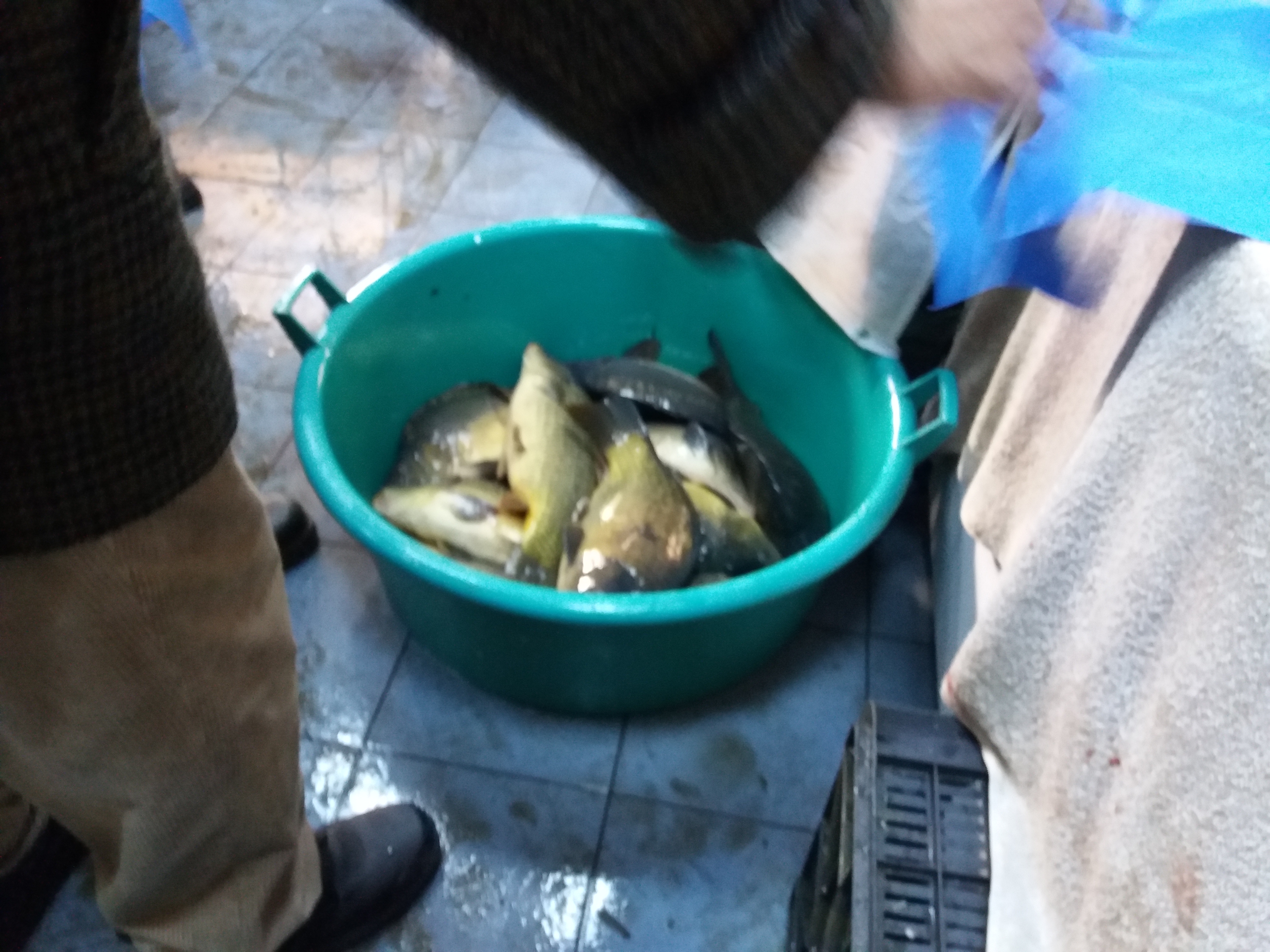 ,,Lumea vine și cumpără pește pentru că se mănâncă în seara de Revelion. Avem pește proaspăt: crap, caras, știucă, păstrăv. Cel mai căutat este păstrăvul’’