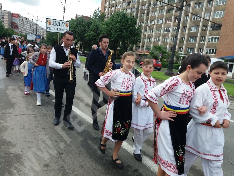 În Parcul Tricolorului atmosfera este incendiară, ansambluri folclorice, fanfare şi formaţii de dansuri din tot județul Caraș-Severin s-au reunit pentru a promova tradițiile bănățene.