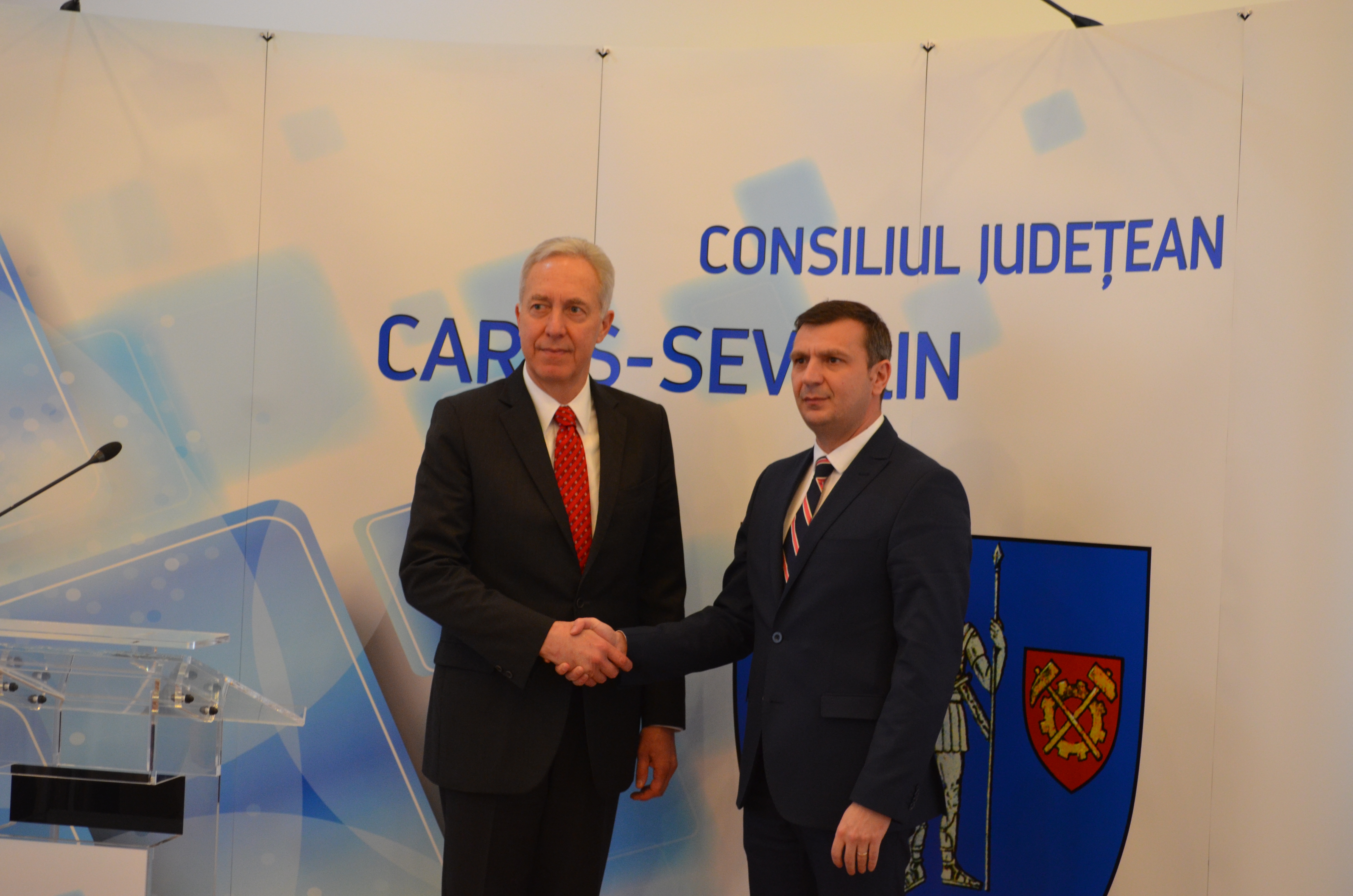 Ambasadorul SUA la București, excelența sa Hans Klemm a fost primit astăzi de conducerea județului Caras-Severin, respetiv prefectul Matei Lupu și președintele Consiliului Județean, Silviu Hurduzeu, dar și de primarul Reșiței, Ioan Popa.