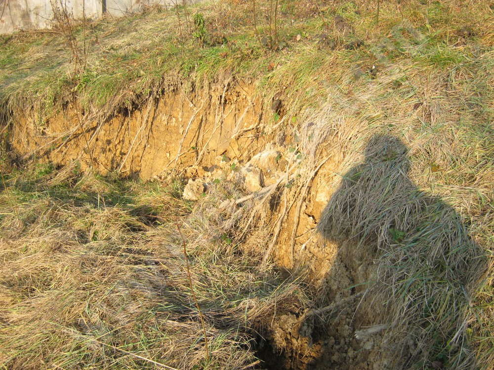 De la proprietarii în cauză am aflat că, de peste 50 de ani de când locuiesc în acele case, nu a fost niciodată o astfel de problemă, să o ia pământul la vale. Doar de acum doi-trei ani de când a fost montată îngropat conducta magistrală de apă potabilă deasupra grădinilor lor, infiltraţiile au devenit pe zi ce trece tot mai accentuate, până au început să disloce malurile de argilă şi piatră din care este structurat versantul.